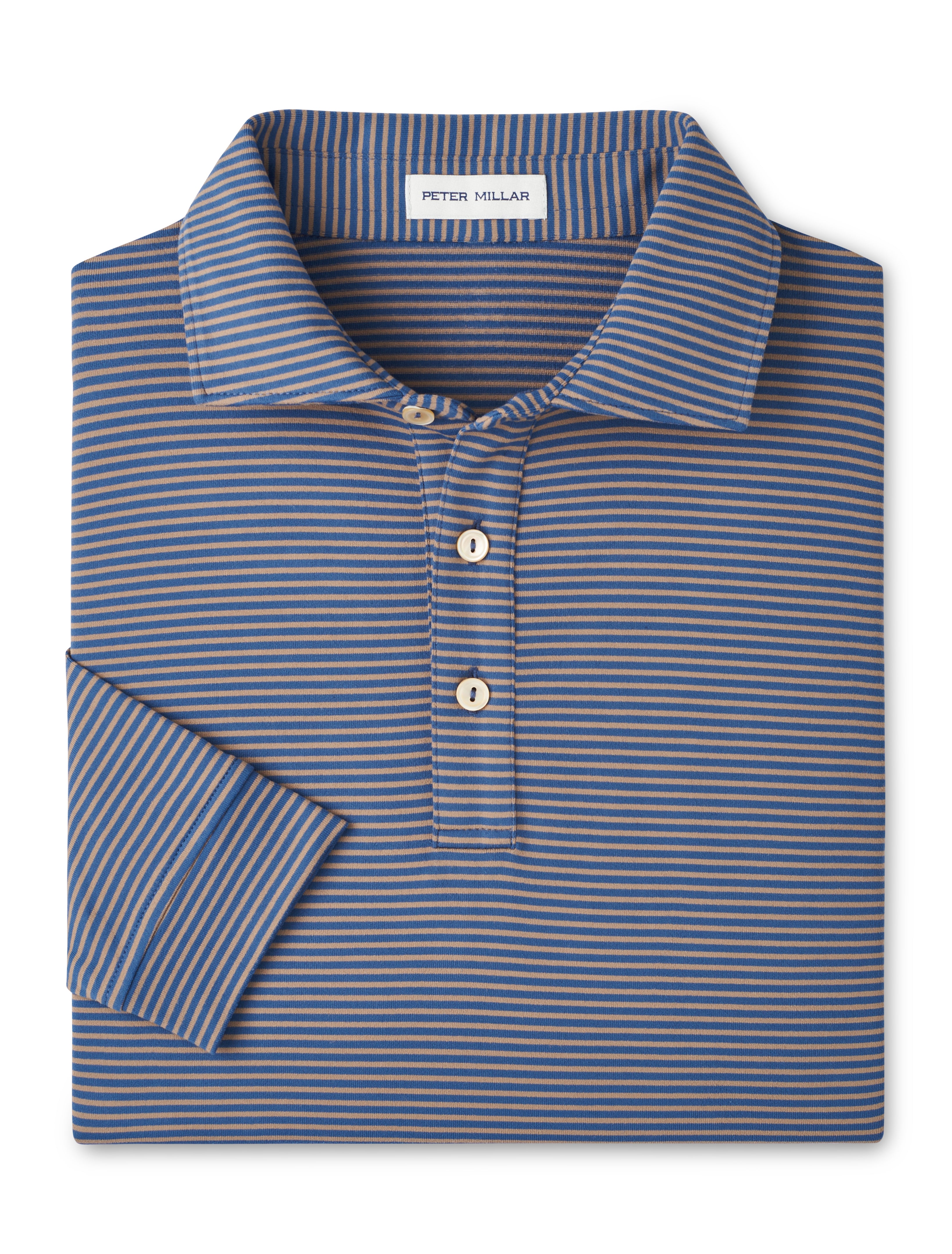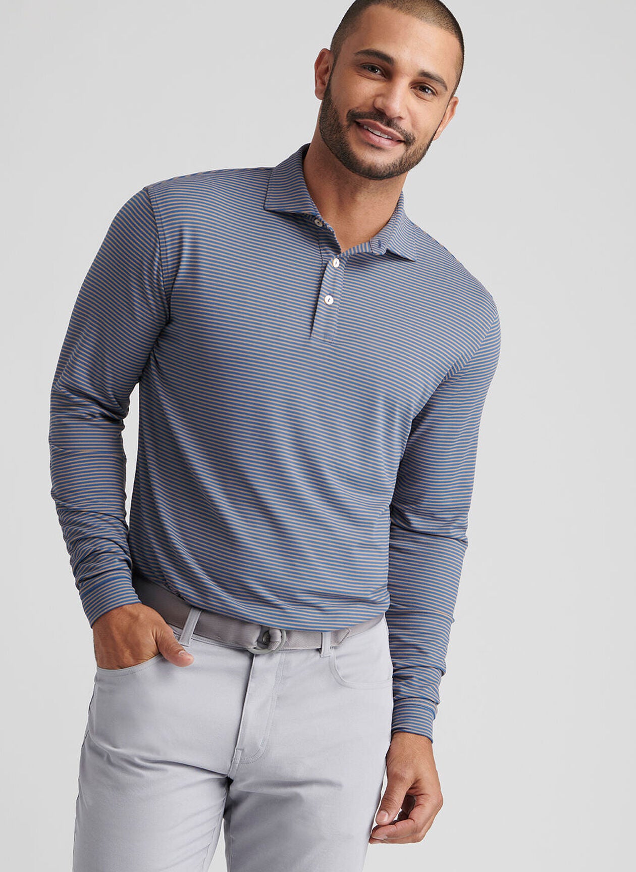 Peter Millar Lyons Stripe Performance Jersey Long-Sleeve Polo in Blue Haze