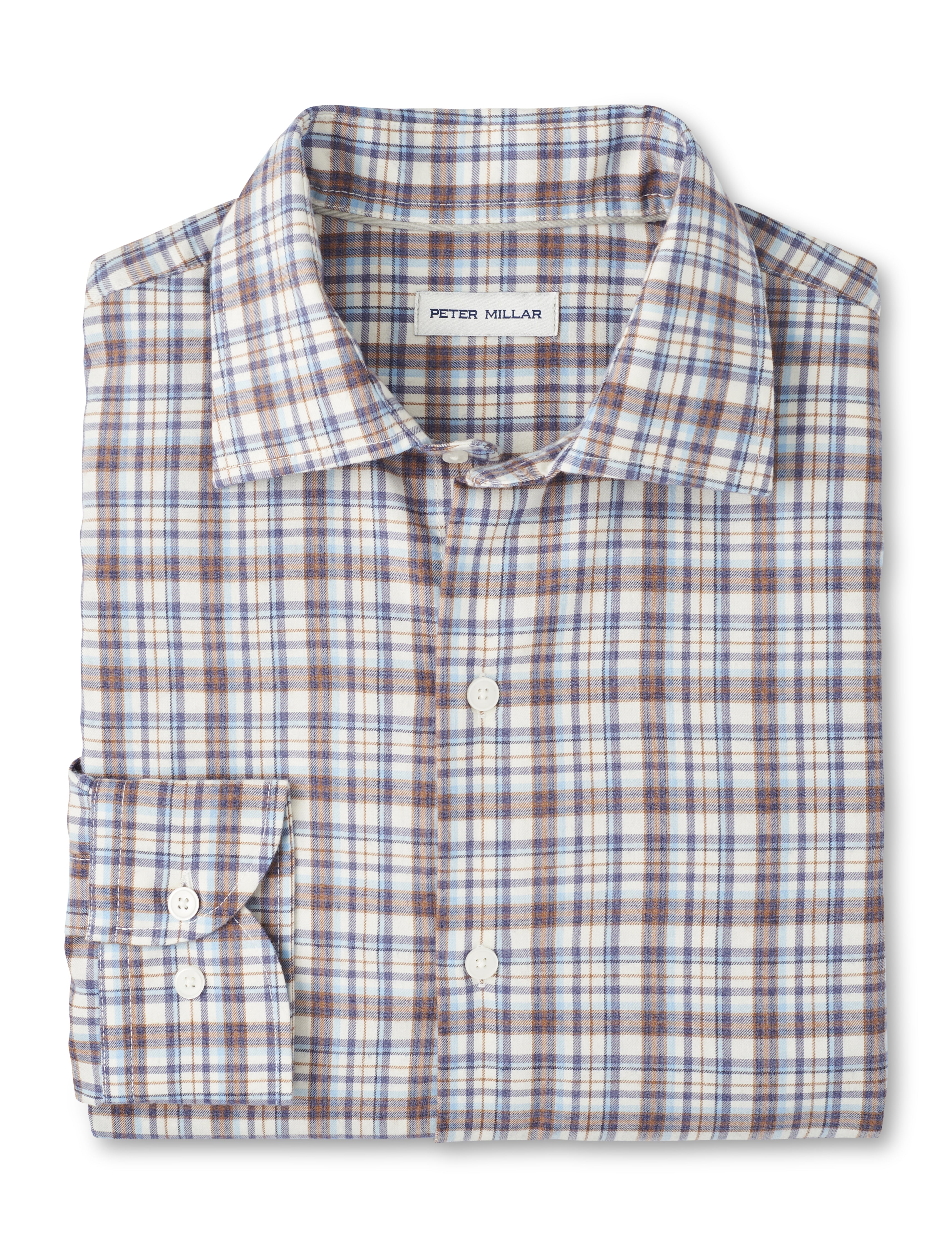 Peter Millar Waynesville Performance Flannel Sport Shirt in Winter Ivory