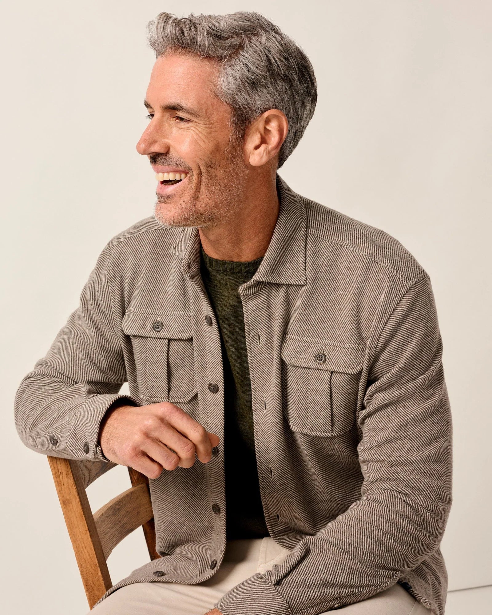 Johnnie-O Denzel Featherweight Shacket in Kelp