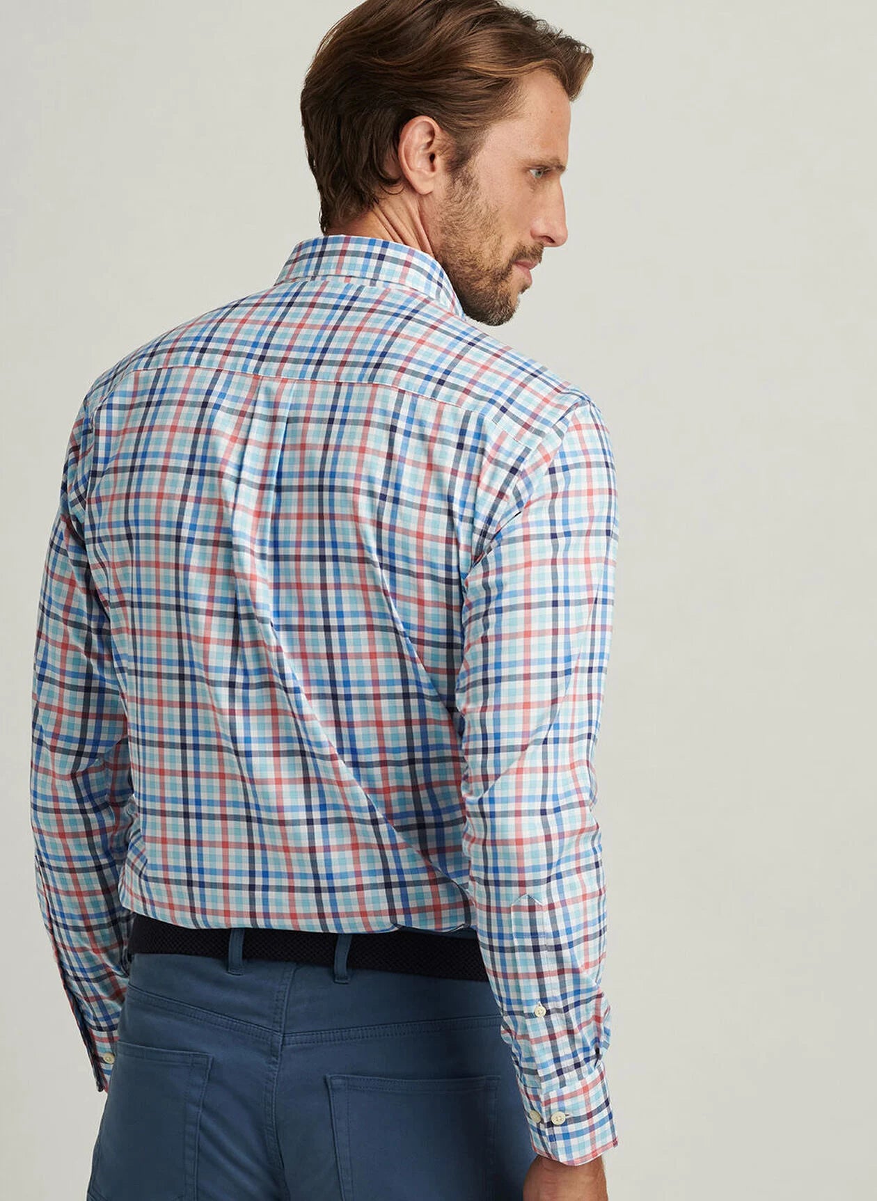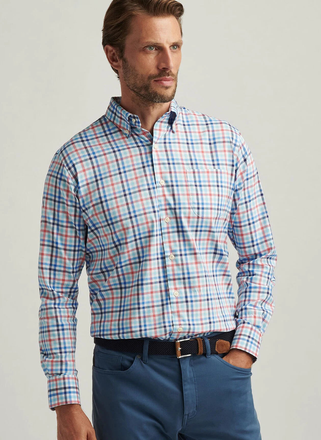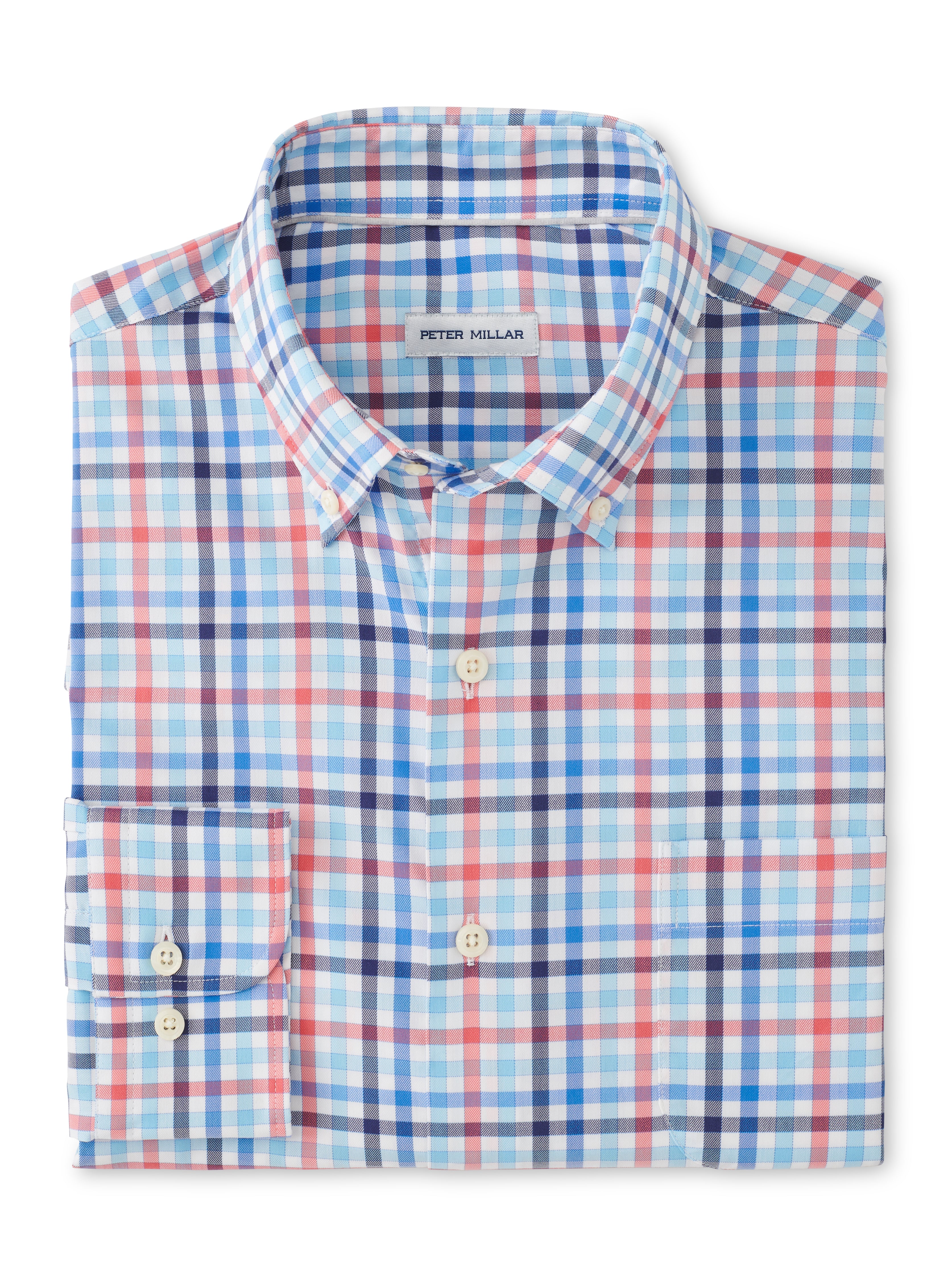 Peter Millar Cashiers Performance Twill Sport Shirt in Sparrow Red