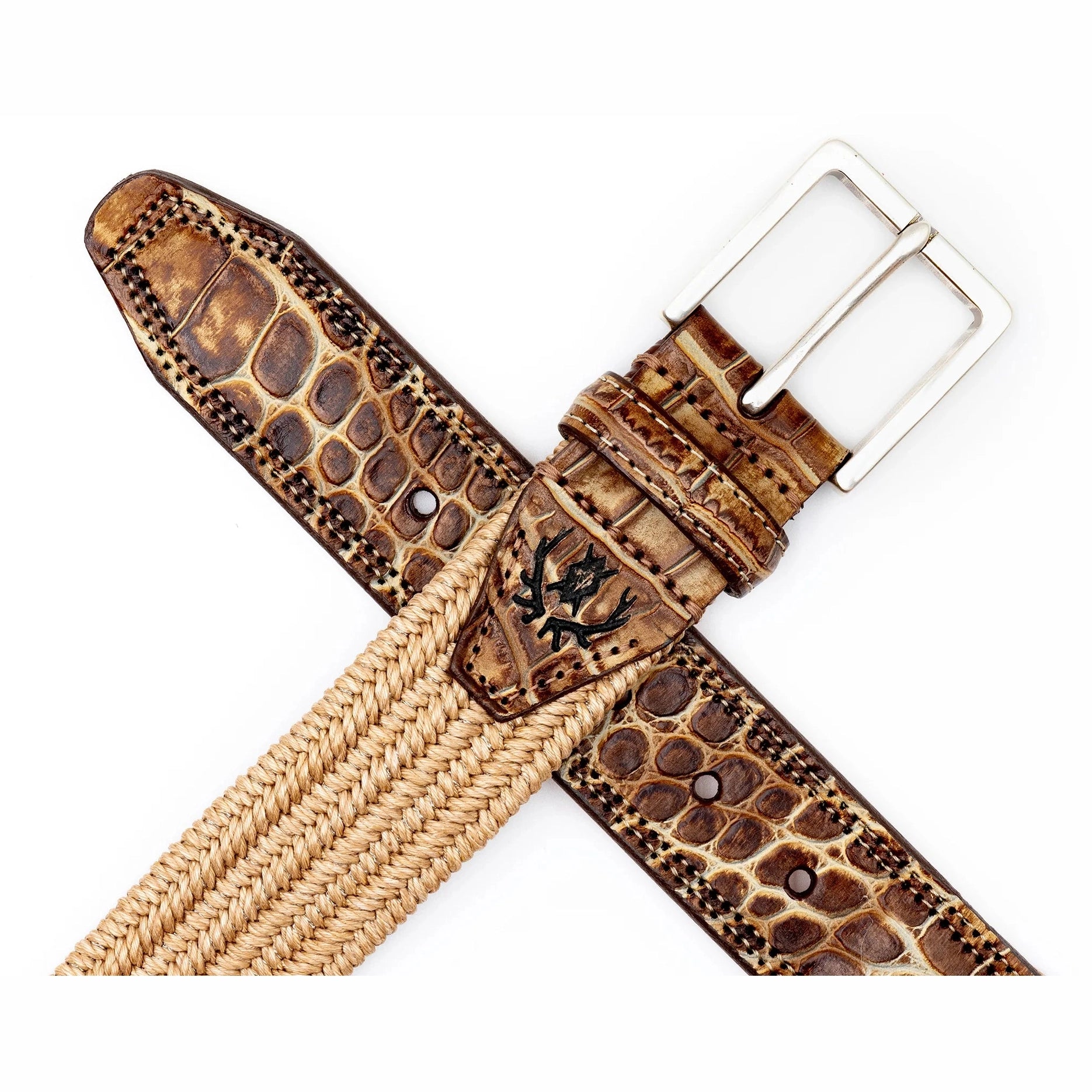 • 1 ⅜" Italian Linen and Elastic Strap with Hand Finished Italian Alligator Trim