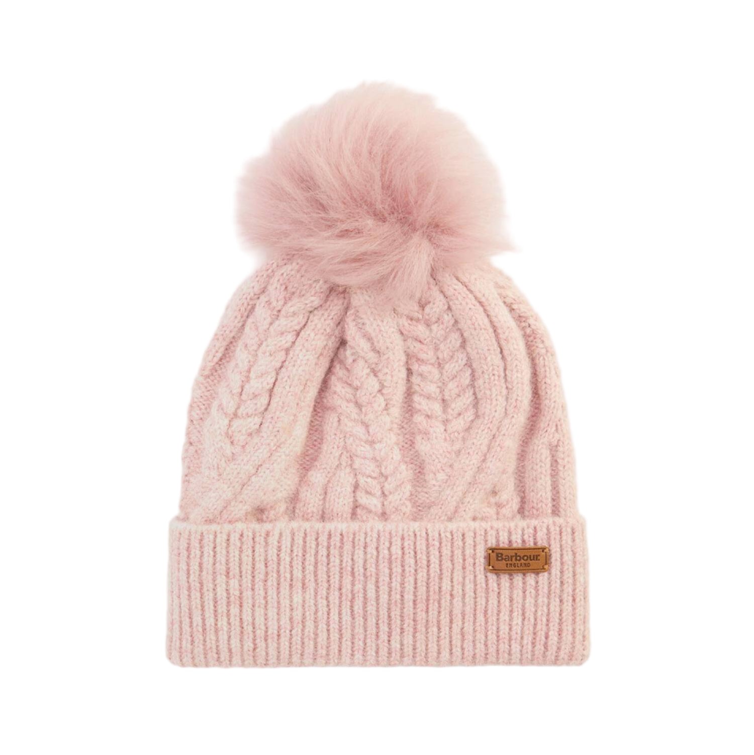 Introducing the Barbour Elsdon Beanie with a stylish cable knit and a contrasting ribbed turnup hem. Featuring a traditional faux-fur pom to the top, this must-have women's accessory is finished with a branded tab to the front for a signature look.