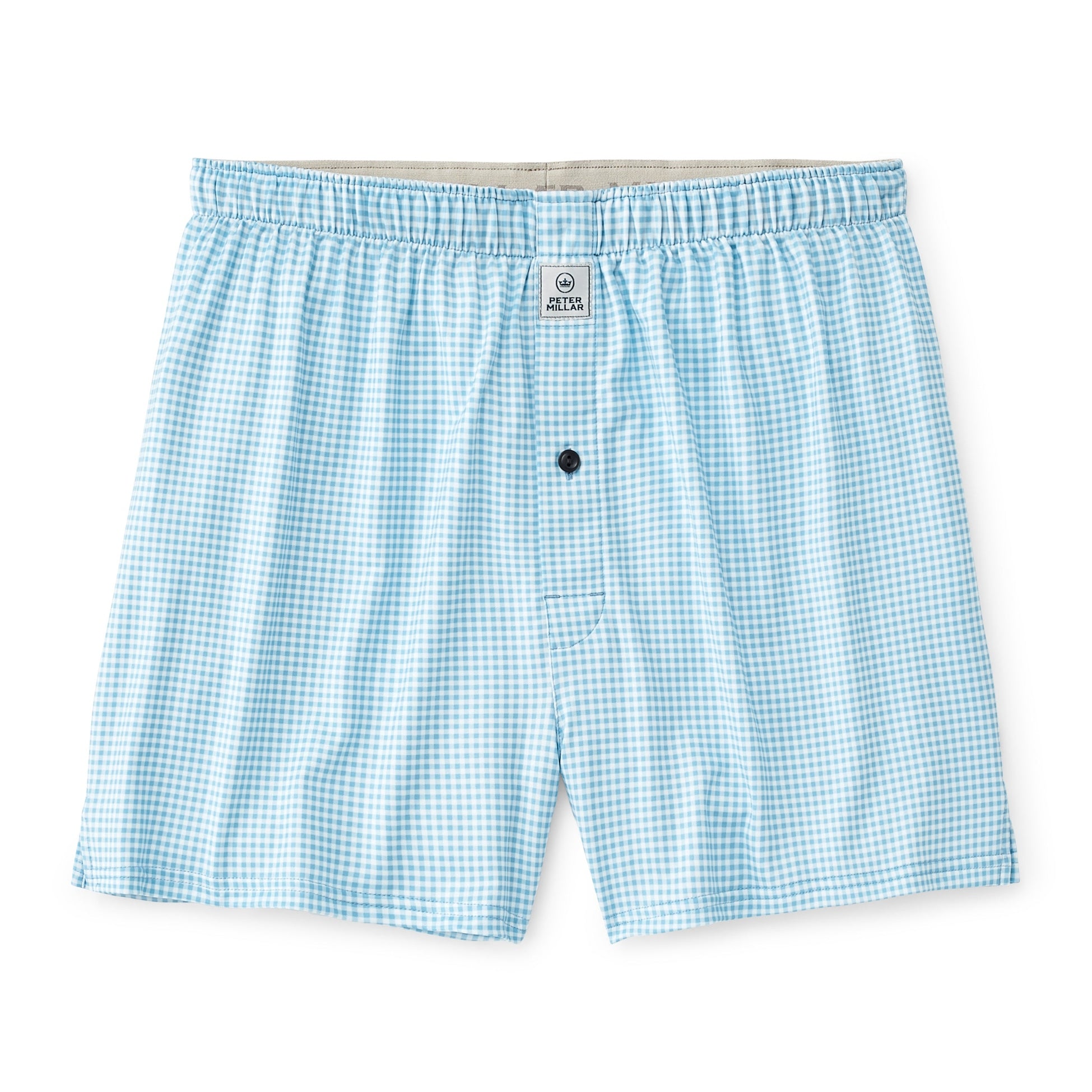 Peter Millar Nebraska Printed Gingham Check Stretch Jersey Boxer-Cottage Blue