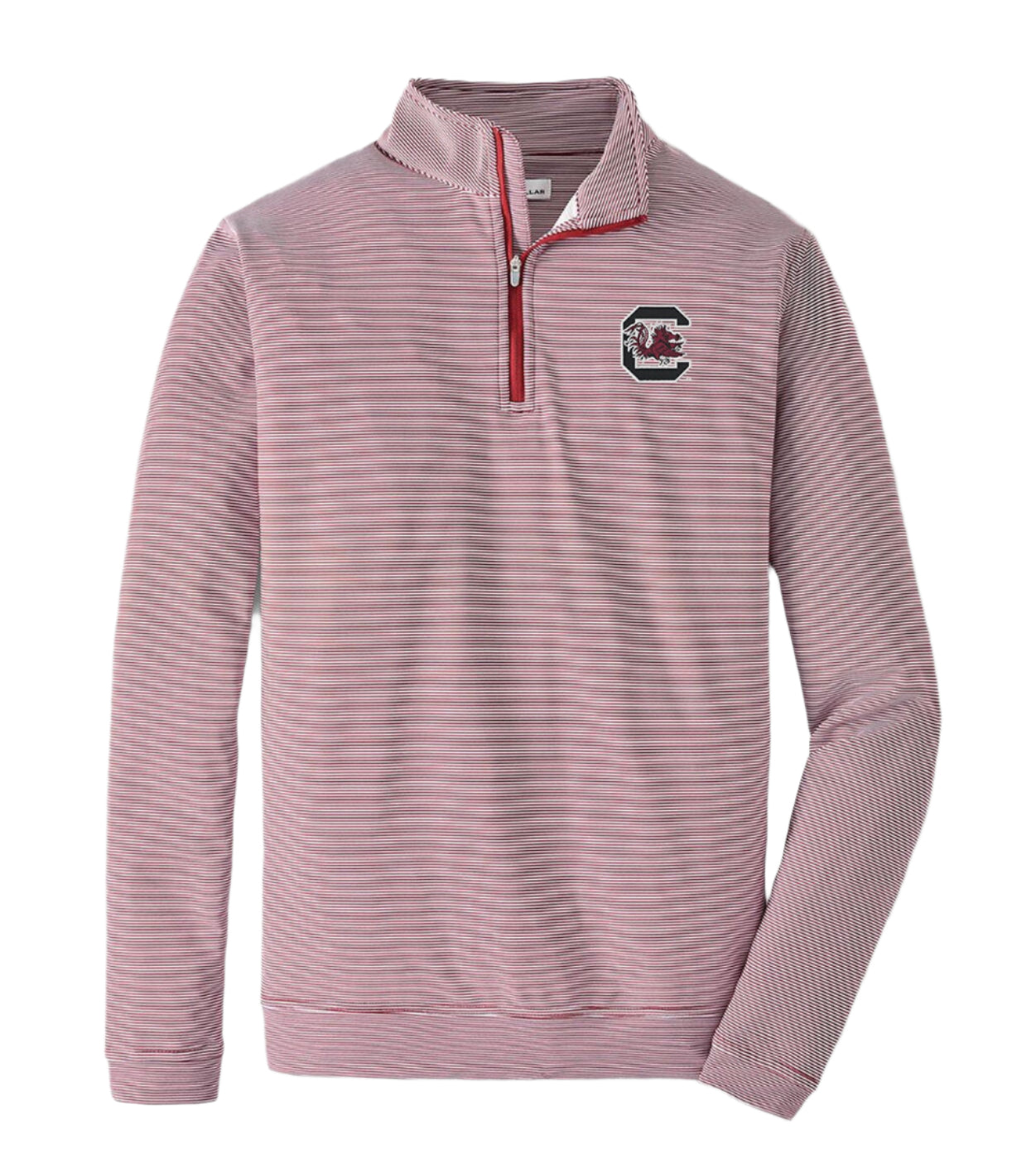 Peter Millar South Carolina Perth Mini-Stripe Performance Pullover in Maroon/White