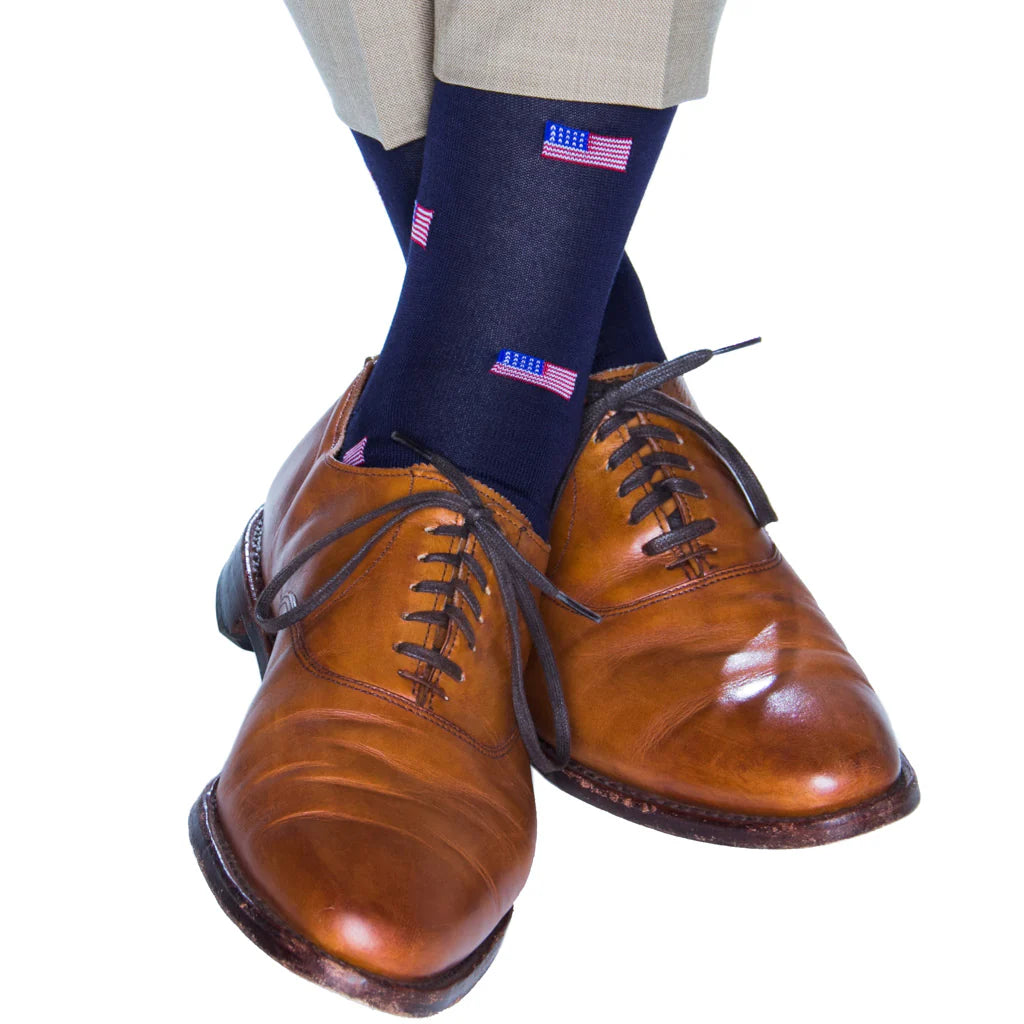 Dapper Classics American Flag Cotton Sock Linked Toe Over-The-Calf in Navy