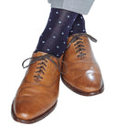 Dapper Classics Dot Cotton Sock Linked Toe Mid-Calf in Navy/Sky