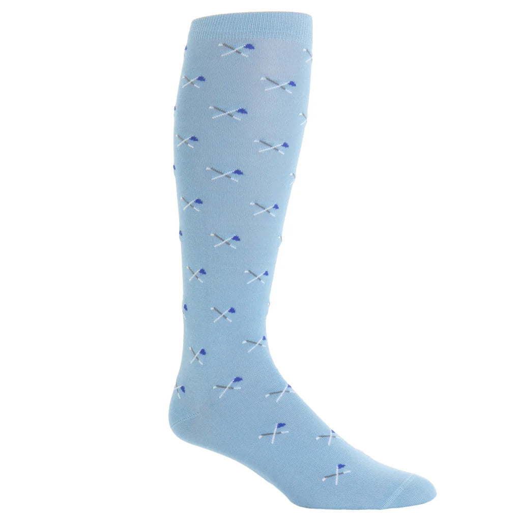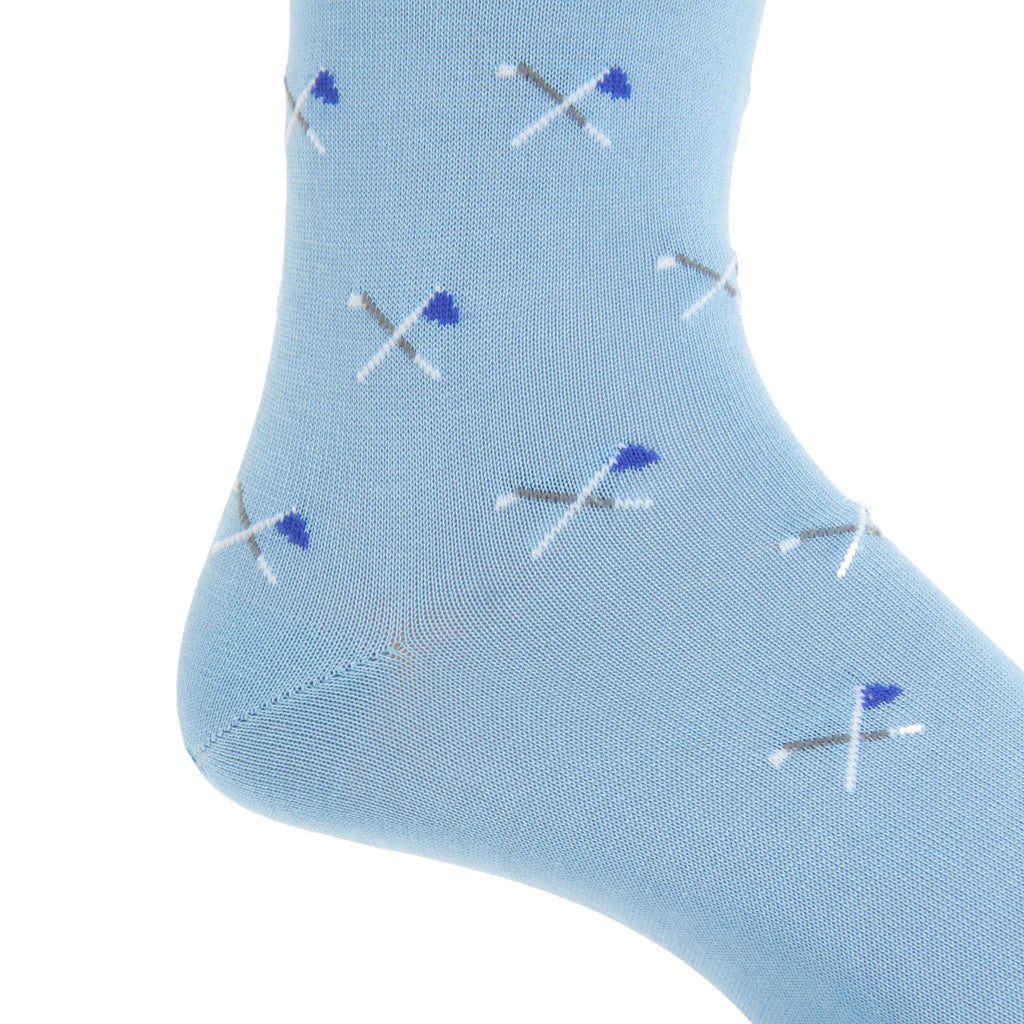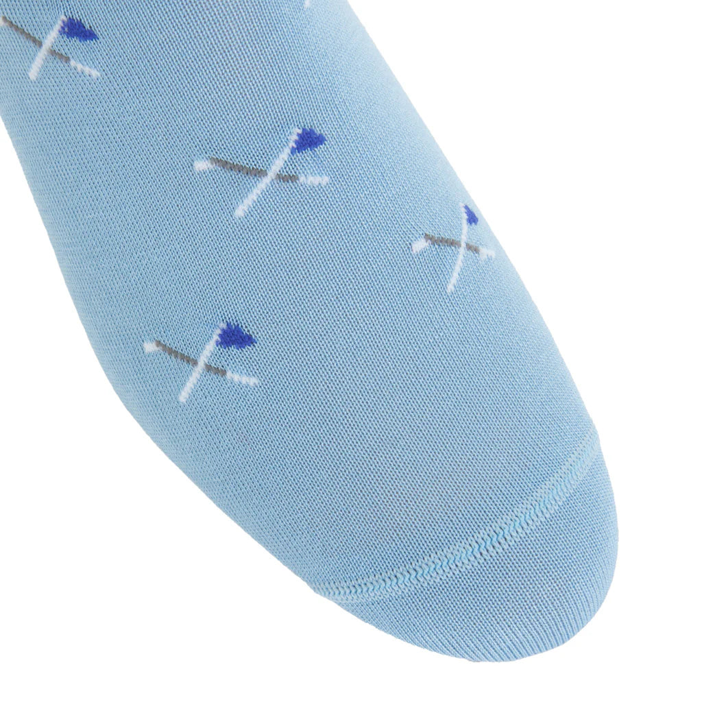Dapper Classics Golf Club & Flag Cotton Sock Linked Toe Mid-Calf in Sky Blue