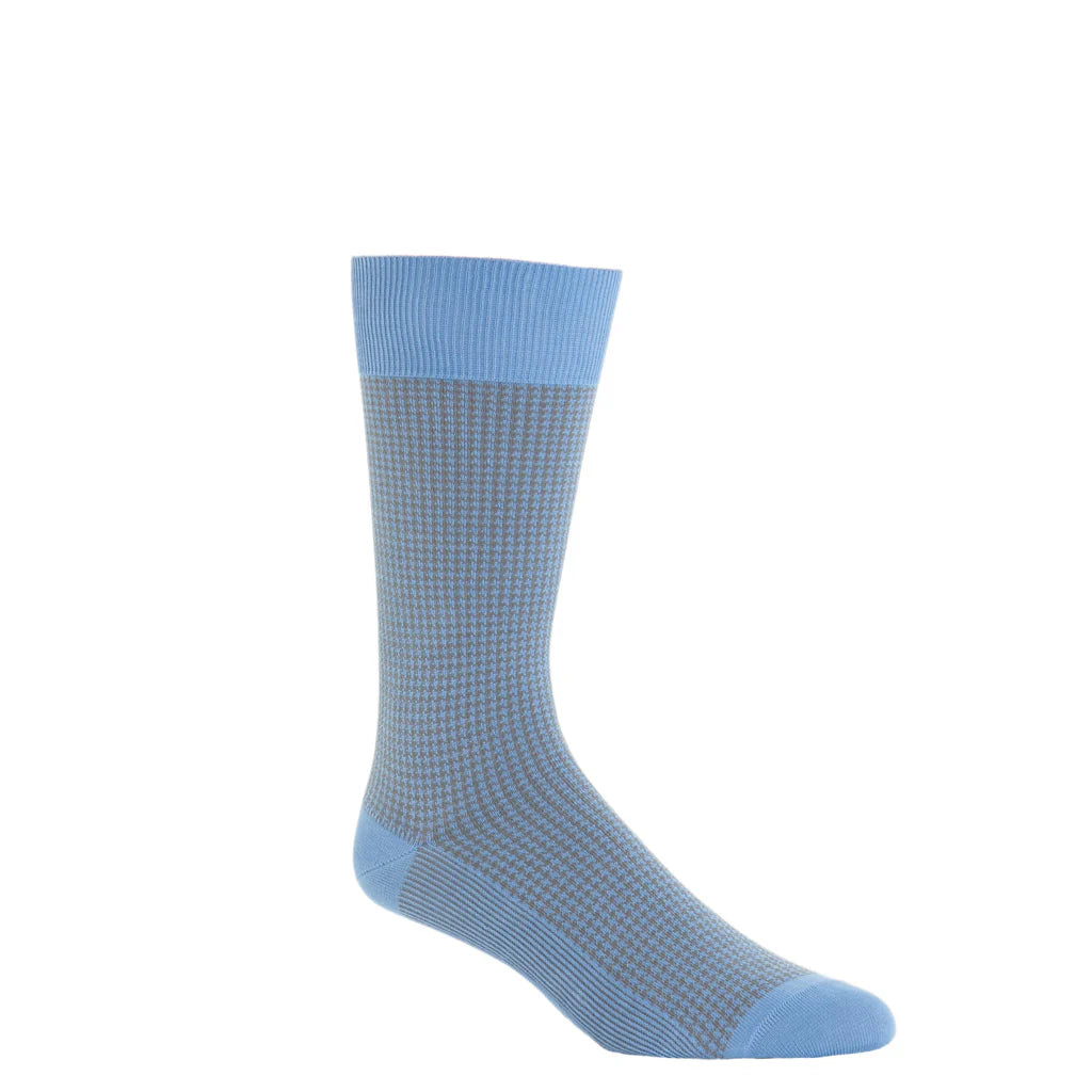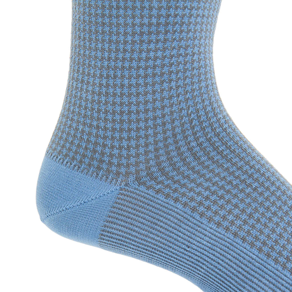 Dapper Classics Houndstooth Cotton Sock Linked Toe Over-The-Calf in Azure Blue