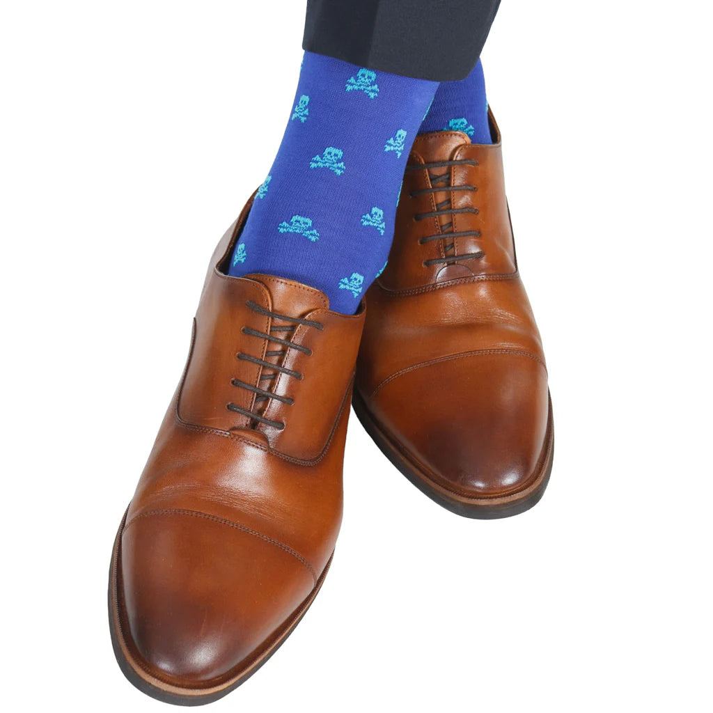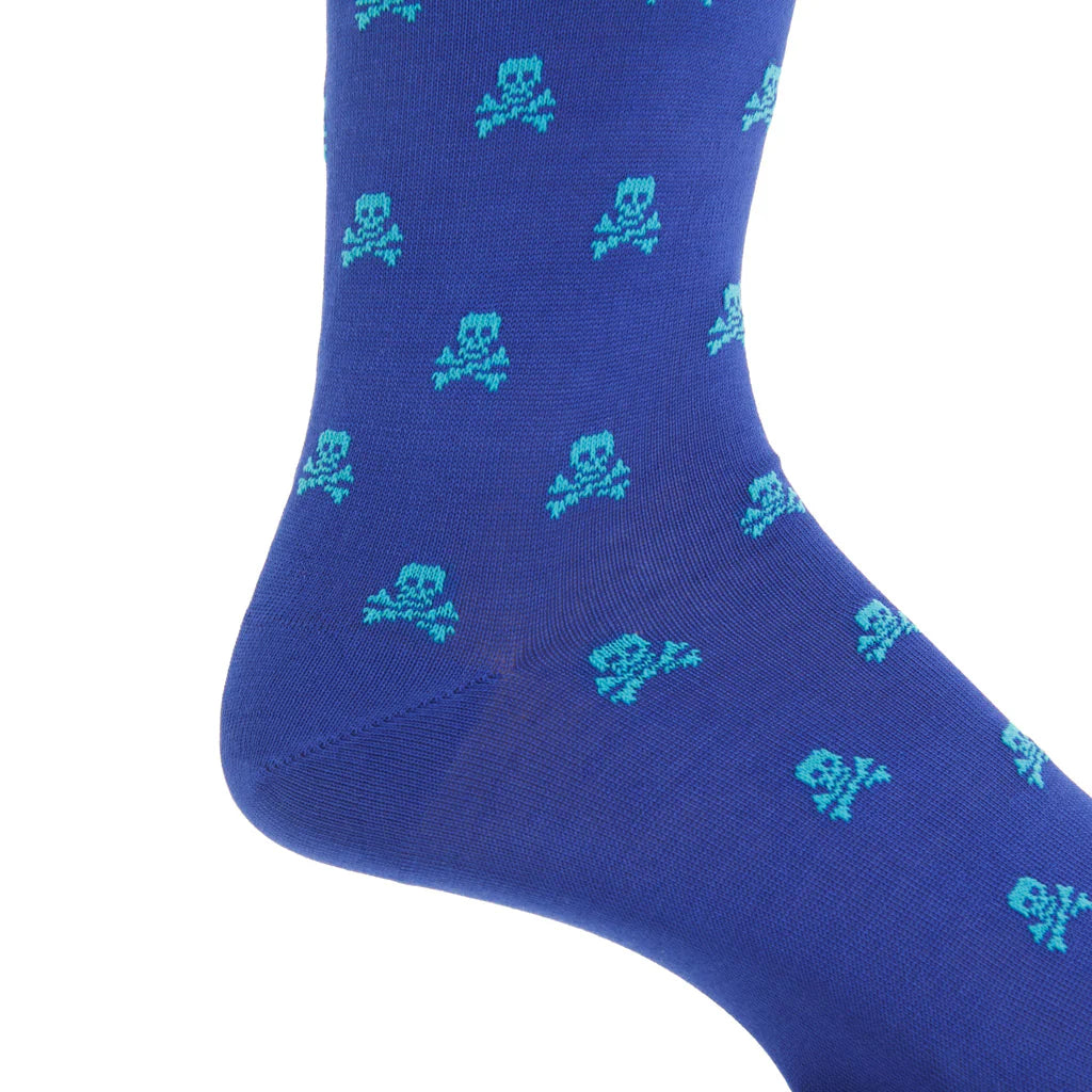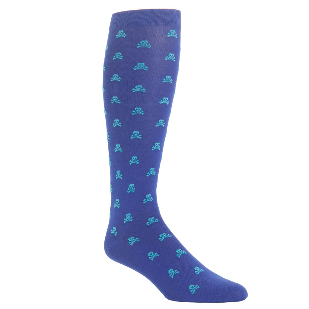 Dapper Classics Skull and Crossbones Cotton Sock Linked Toe Over-The-Calf in Clematis