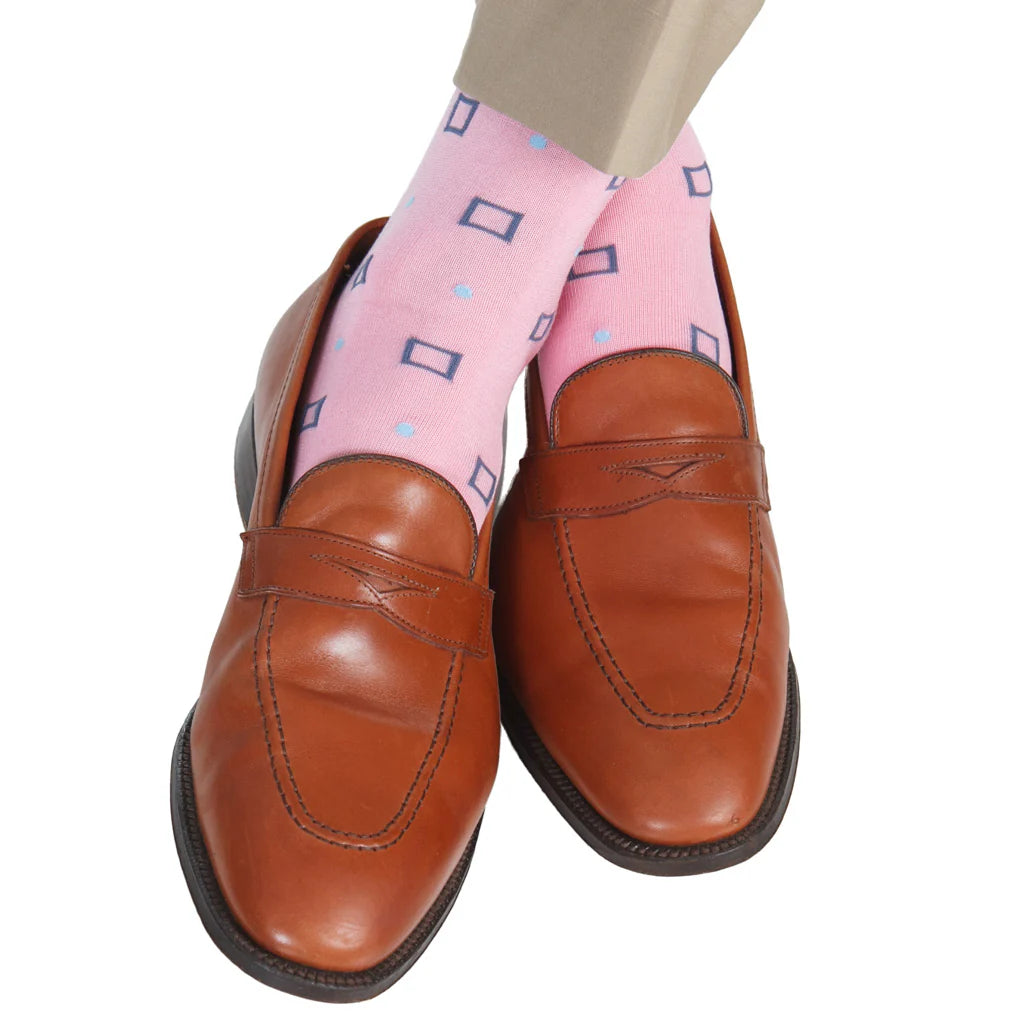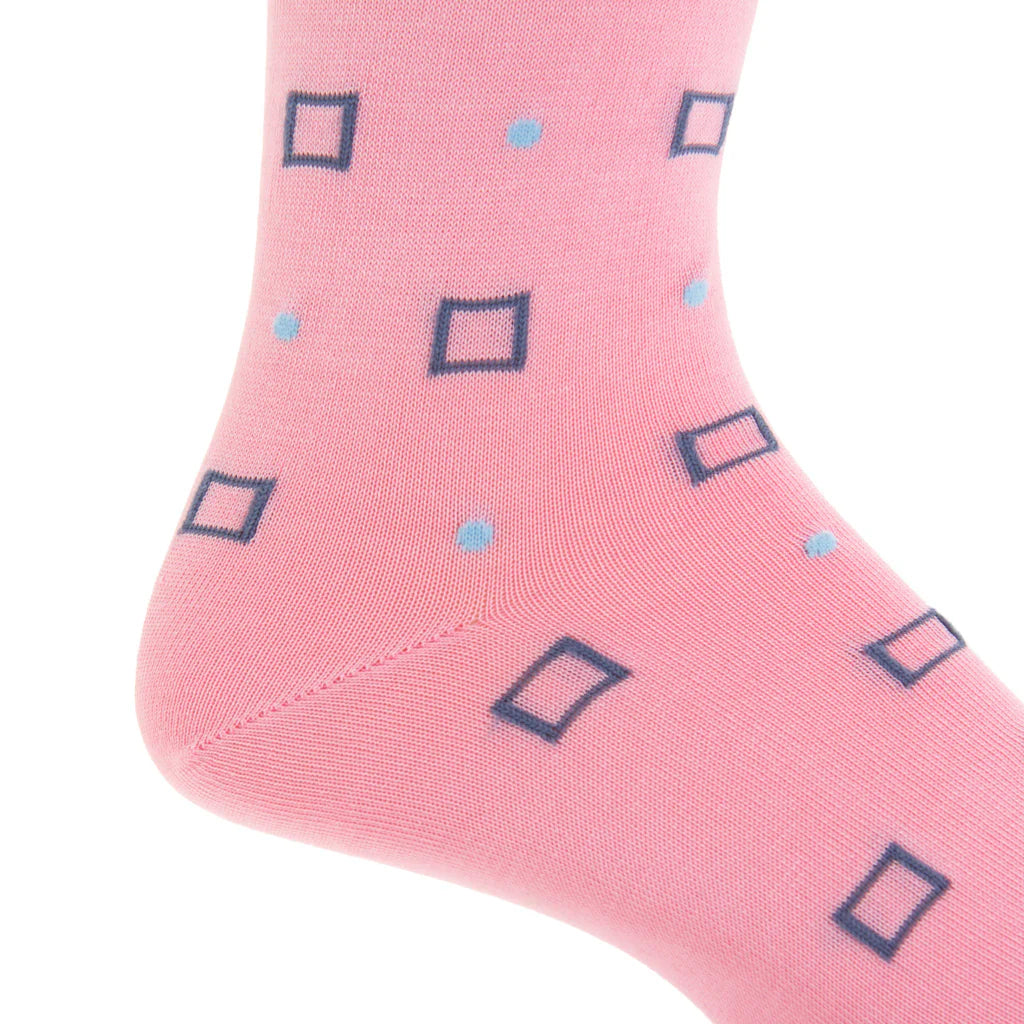Dapper Classics Square and Dot Cotton Sock Linked Toe Over-The-Calf in Pink