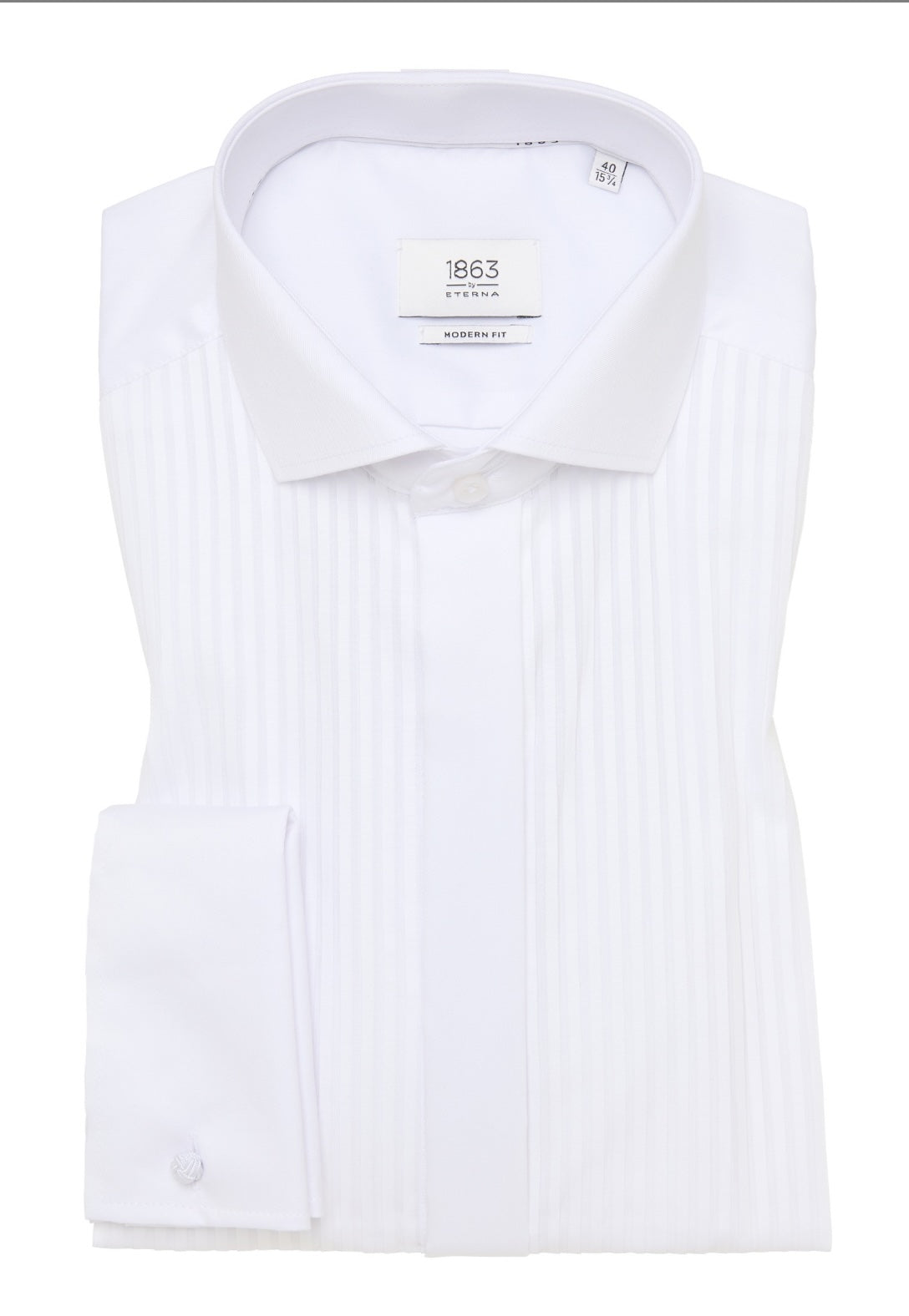 Eterna Full Pleat Luxury Non-Iron Tuxedo Shirt in White