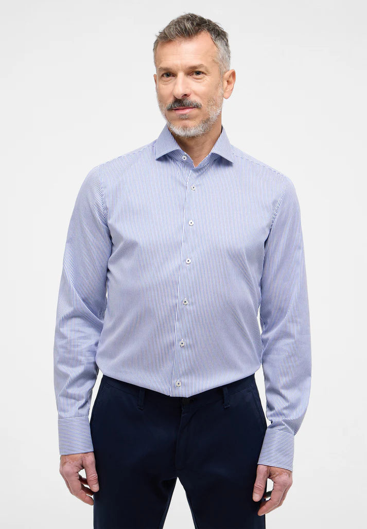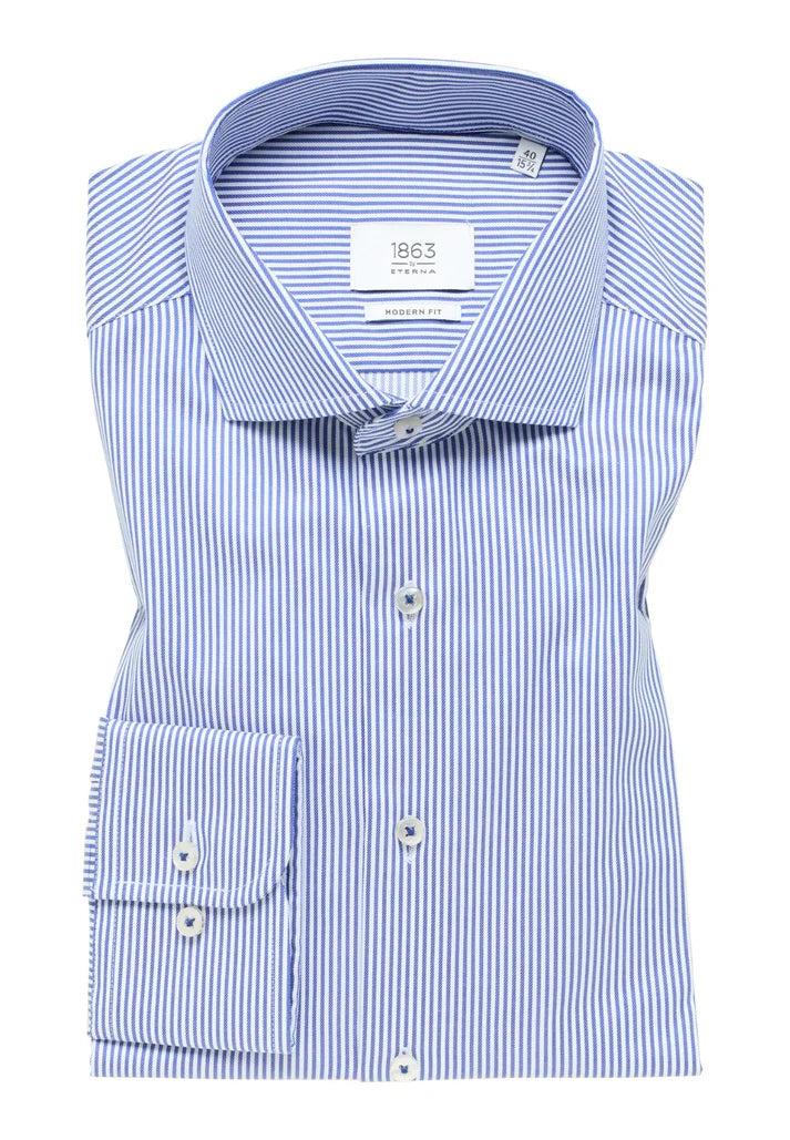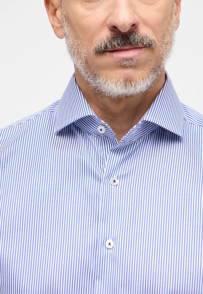 Eterna Modern Fit Luxury Dress Shirt in Blue-White Banker Stripe