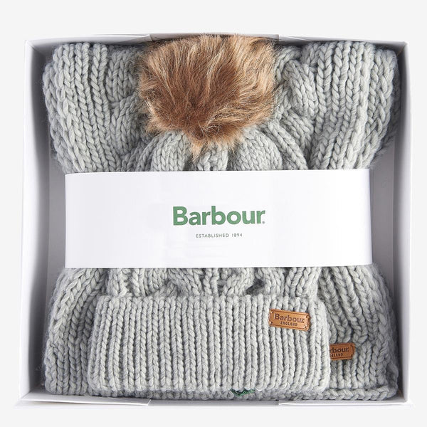 Barbour Penshaw Beanie and Scarf Set in Grey