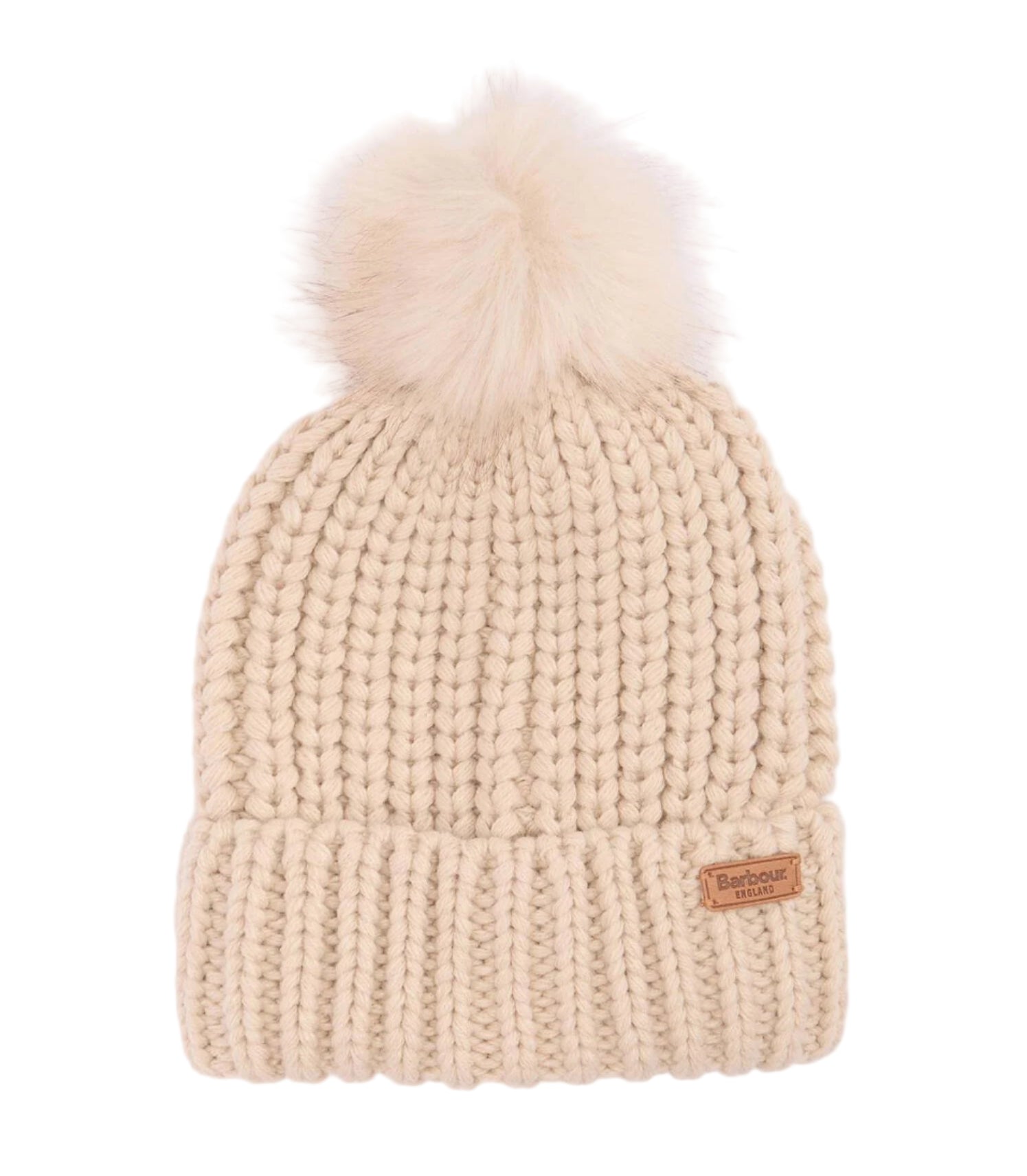 Introducing the superb Alnwick beanie hat with a stylish chunky yarn and a contrasting ribbed turnup hem. Featuring a traditional faux-fur pom to the top, this must-have women’s accessory is finished with a branded tab to the front for a signature look.