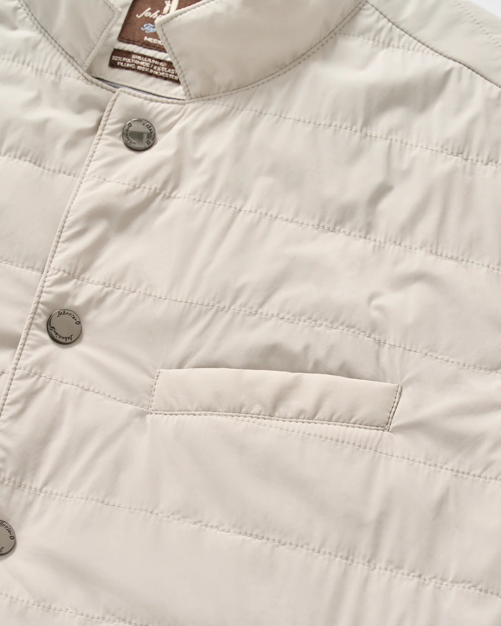 Our Top Shelf collection features our most elevated pieces with an emphasis on ultra-premium fabrics and next-level details. The Bauer is designed with our signature snap front to give it that Johnnie-O practicality, while water resistant fabric and a lightweight construction make it the perfect layer, rain or shine. Style it with other pieces from our Top Shelf line and you might just get a few compliments.