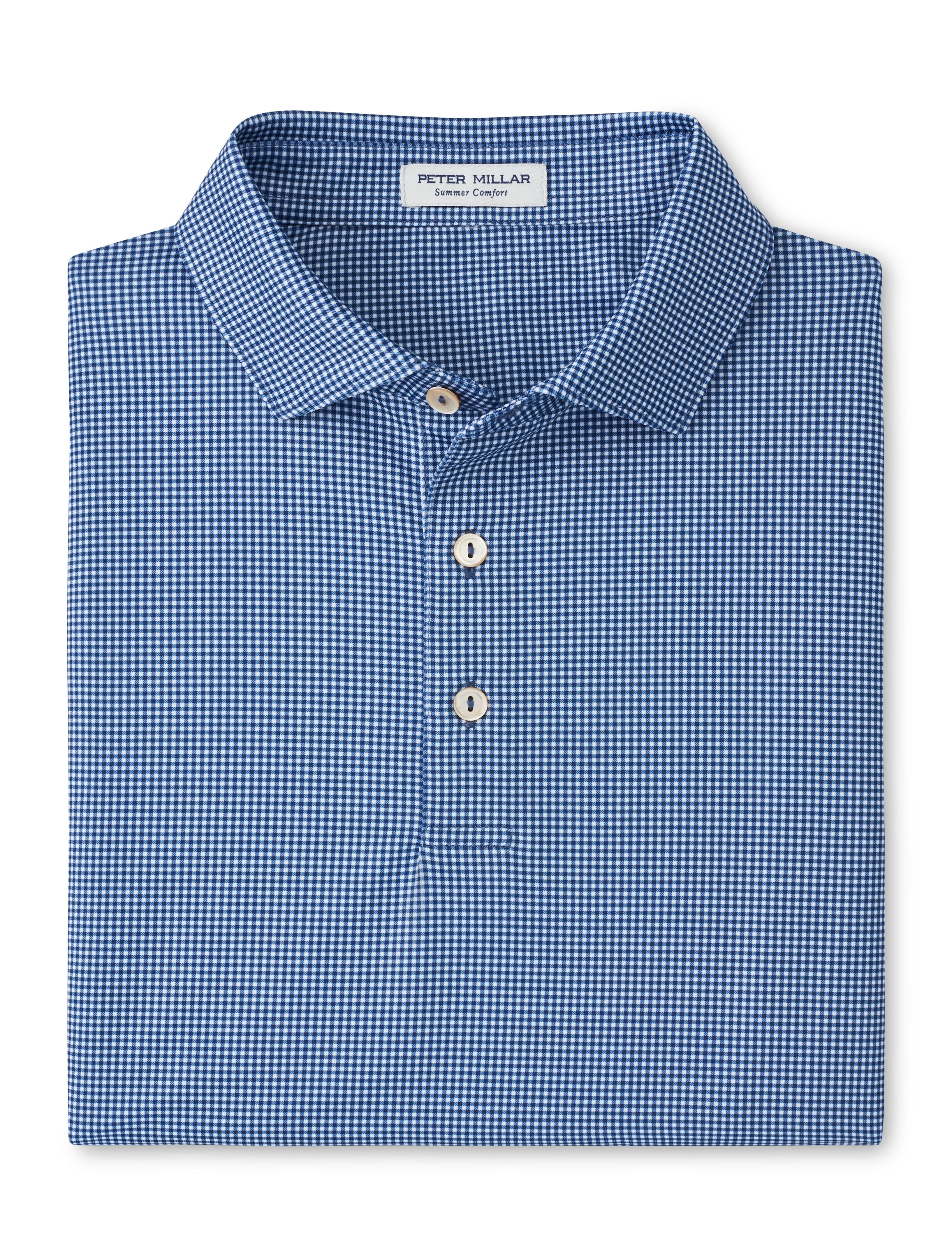 Peter Millar Gingham Performance Jersey Polo in Blue Haze