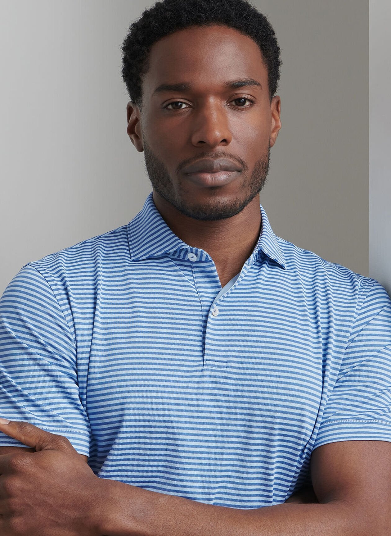 Johnnie-O Performance Mesh Polo - Stetson Stripe in Tide