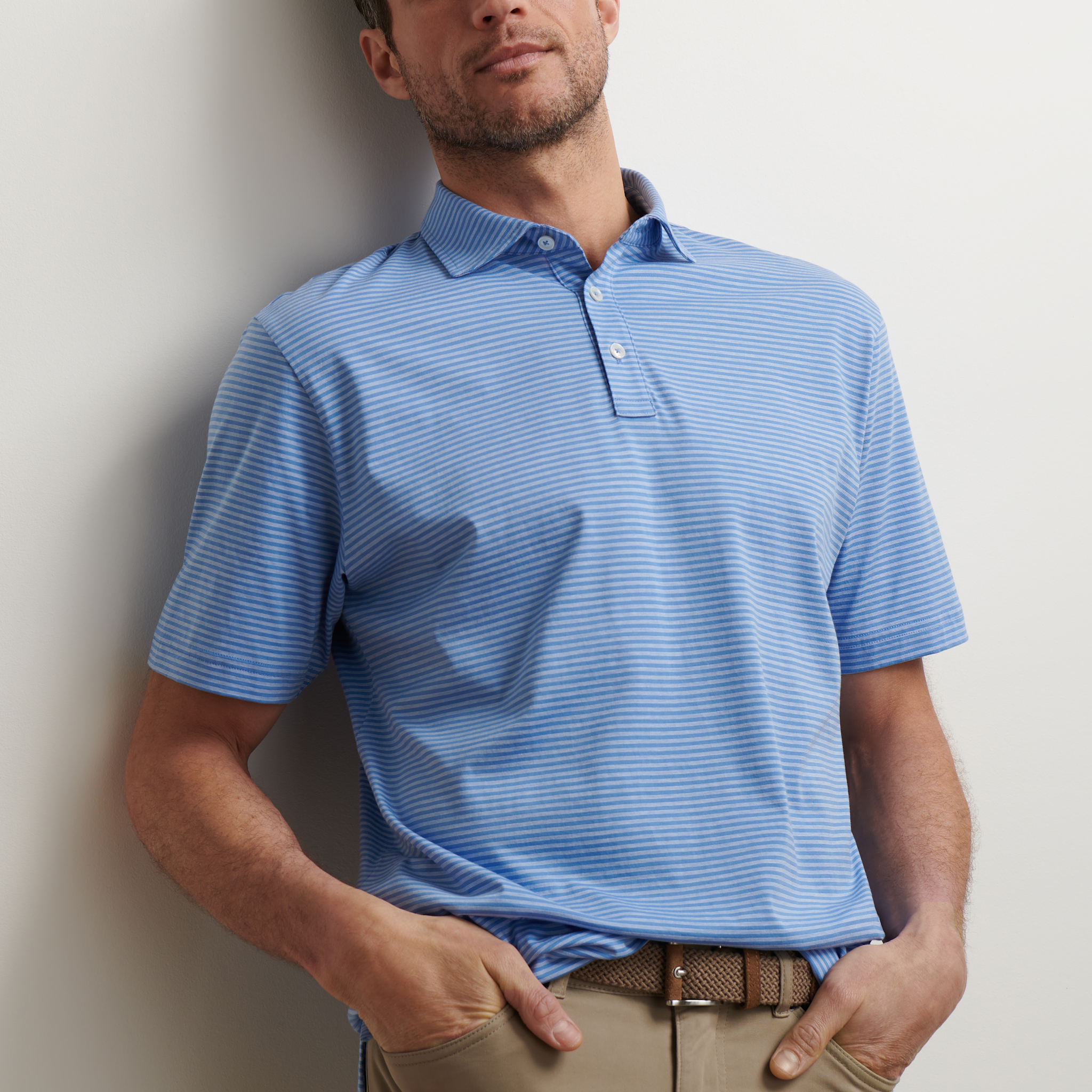 Peter Millar Collins Stripe Crown Comfort Cotton Polo in Evening Tide