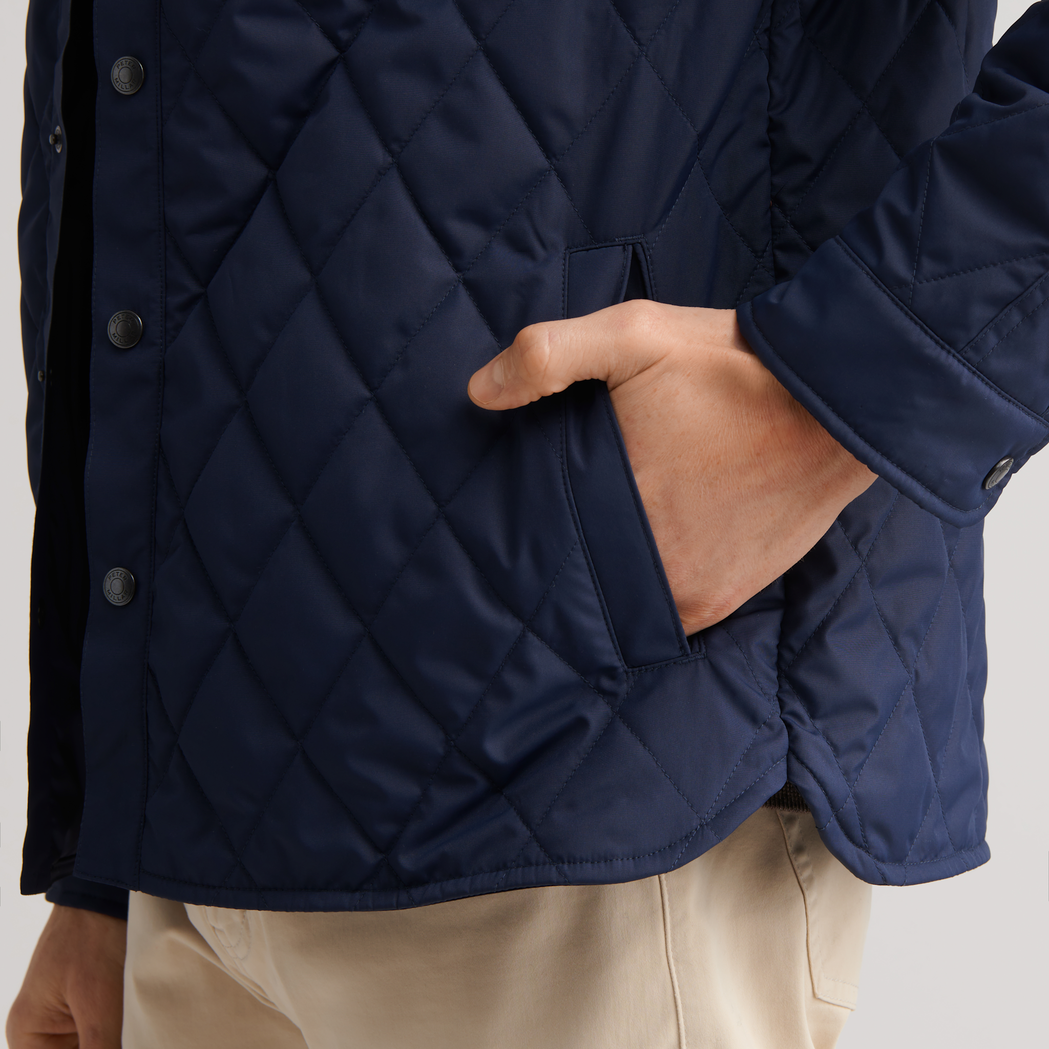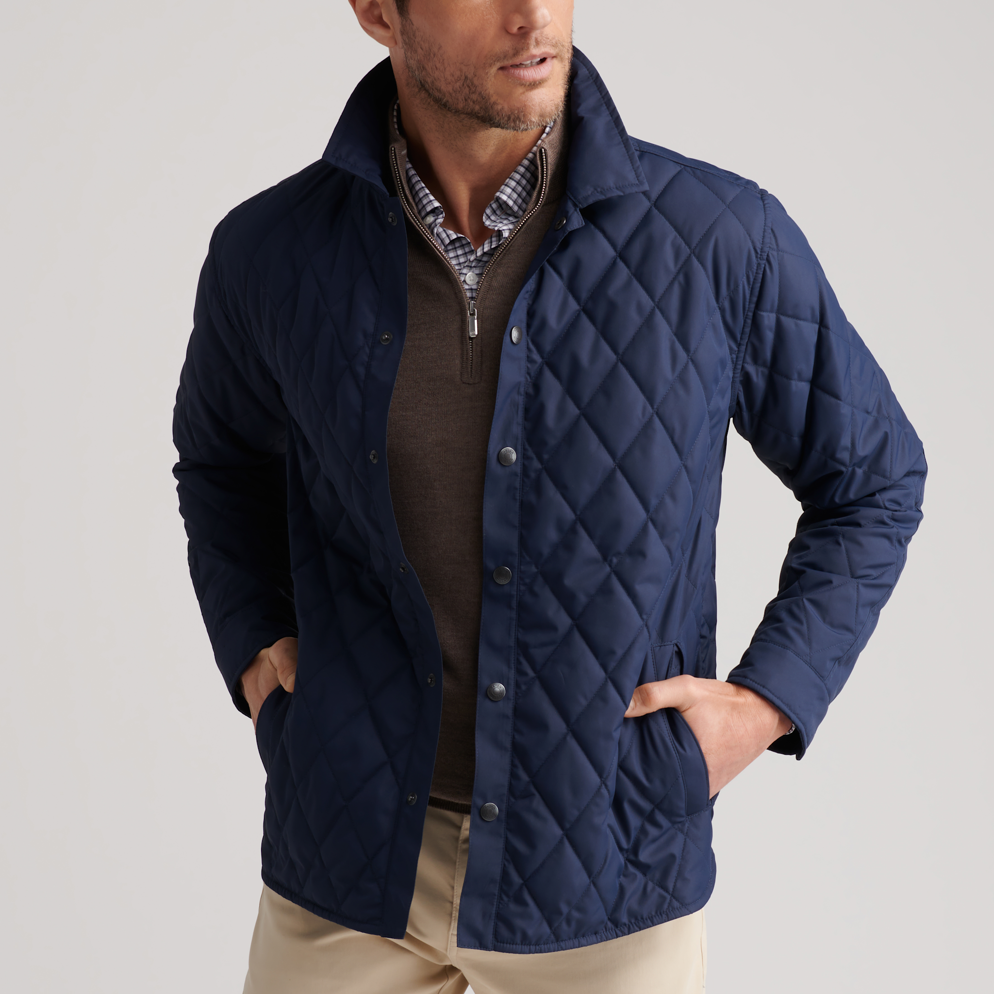 A casual twist on our classic quilted outerwear, expressed with a fresh elongated diamond design and new silhouette. It features the same matte finish and water-resistant, windproof qualities as its more traditional counterparts in a new functional shirt jacket that’s unlined and easy to layer.