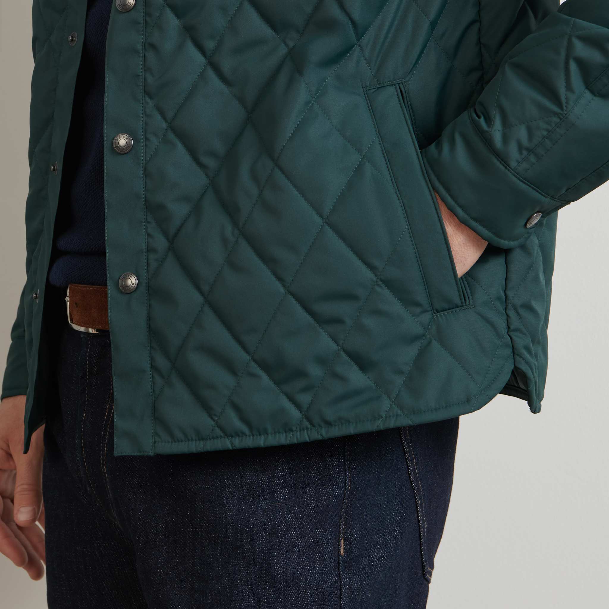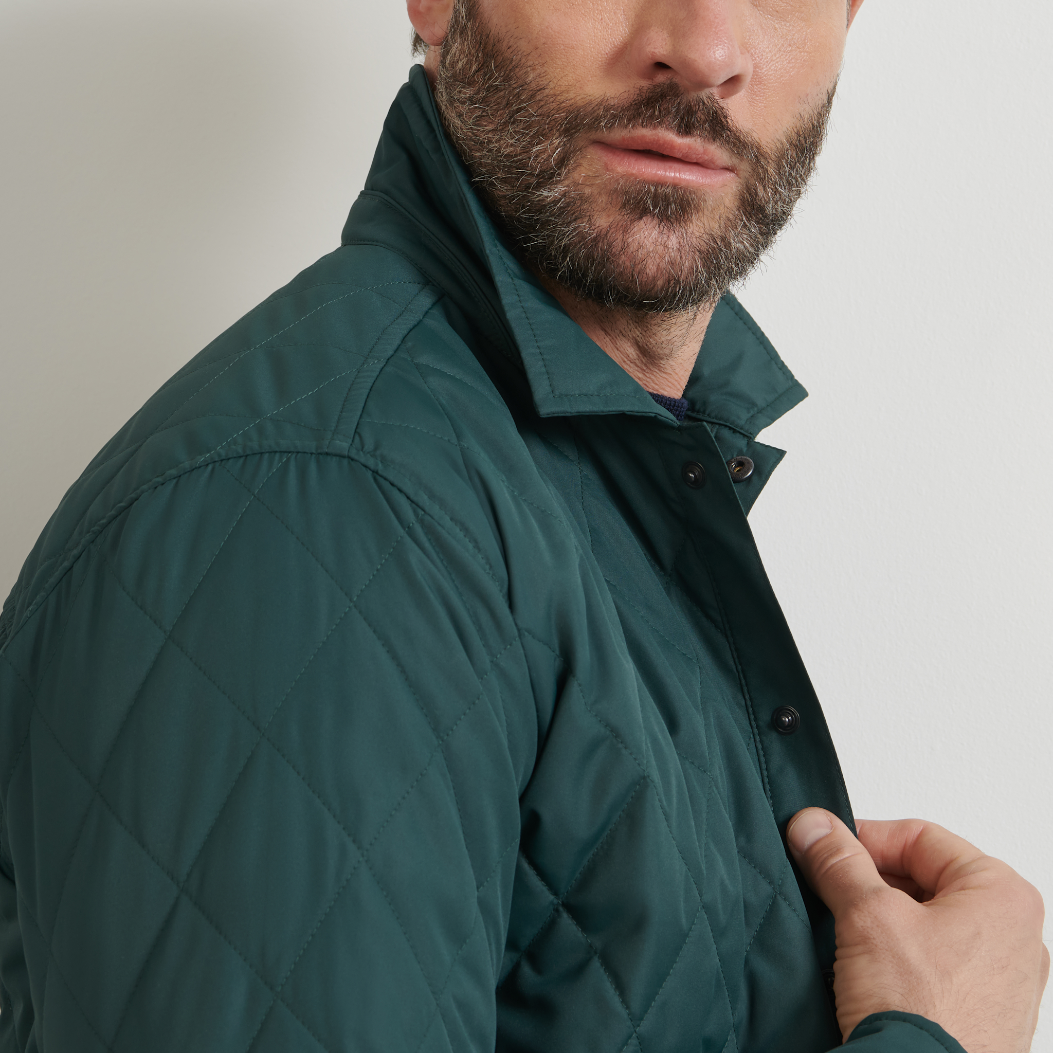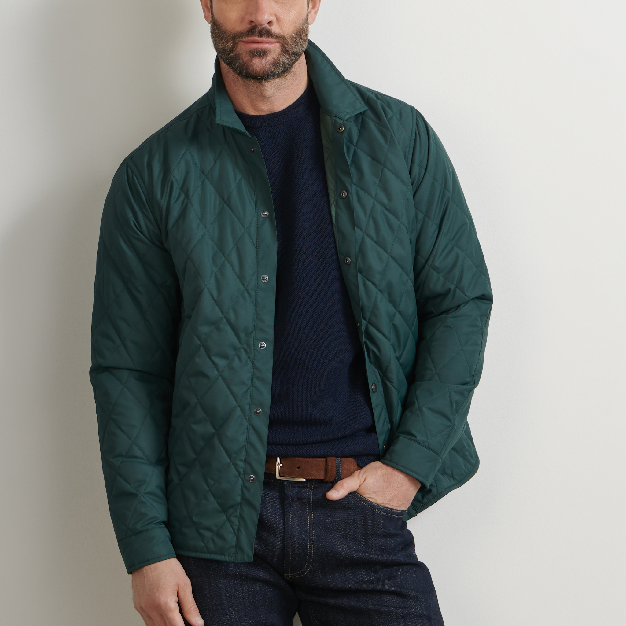 A casual twist on our classic quilted outerwear, expressed with a fresh elongated diamond design and new silhouette. It features the same matte finish and water-resistant, windproof qualities as its more traditional counterparts in a new functional shirt jacket that’s unlined and easy to layer.