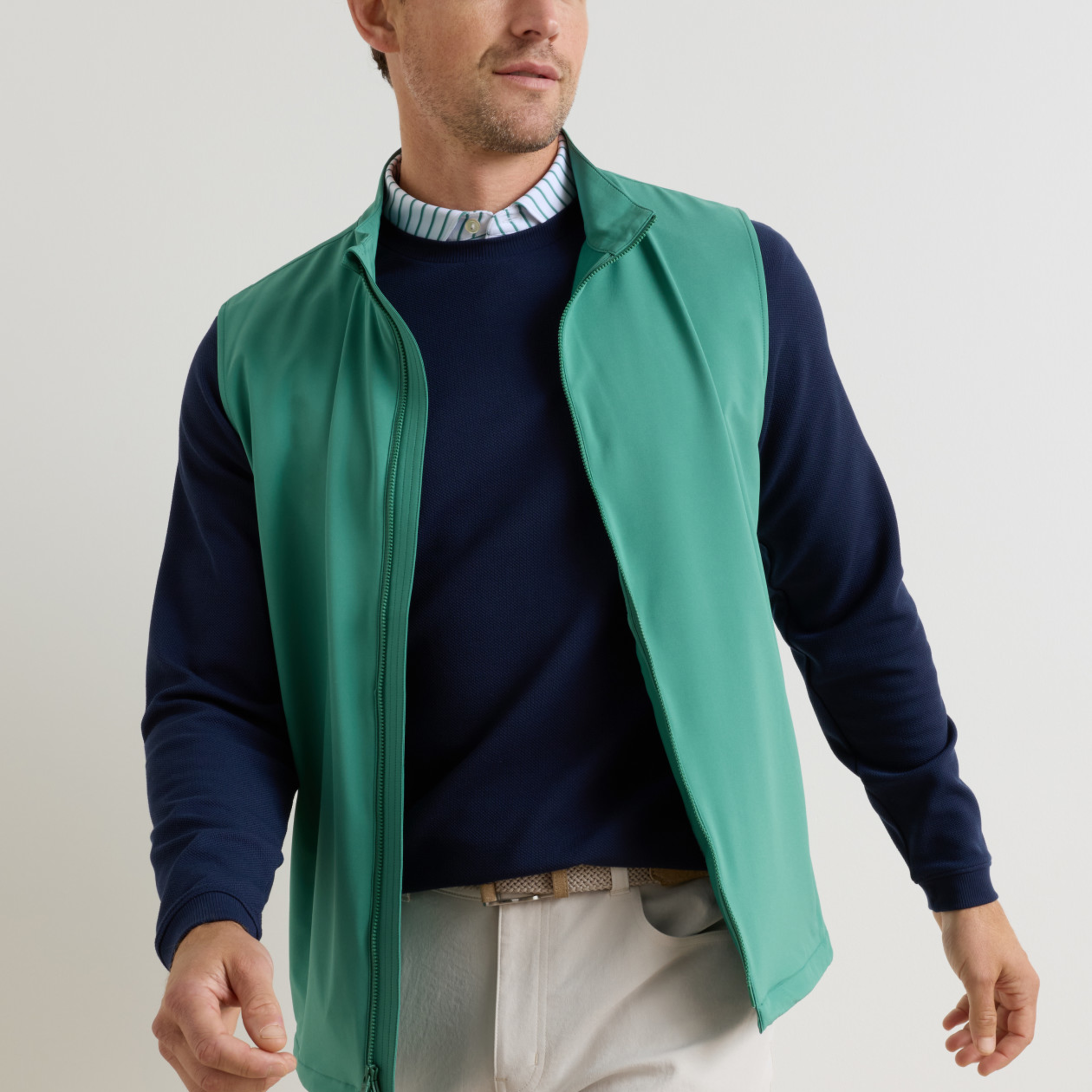 This streamlined vest showcases a soft, quiet and lightweight double-weave performance fabric that's perfect for blustery days. Windproof and water-resistant, it's defined by clean style and wide-ranging functionality. Finished with a two-way zip closure.