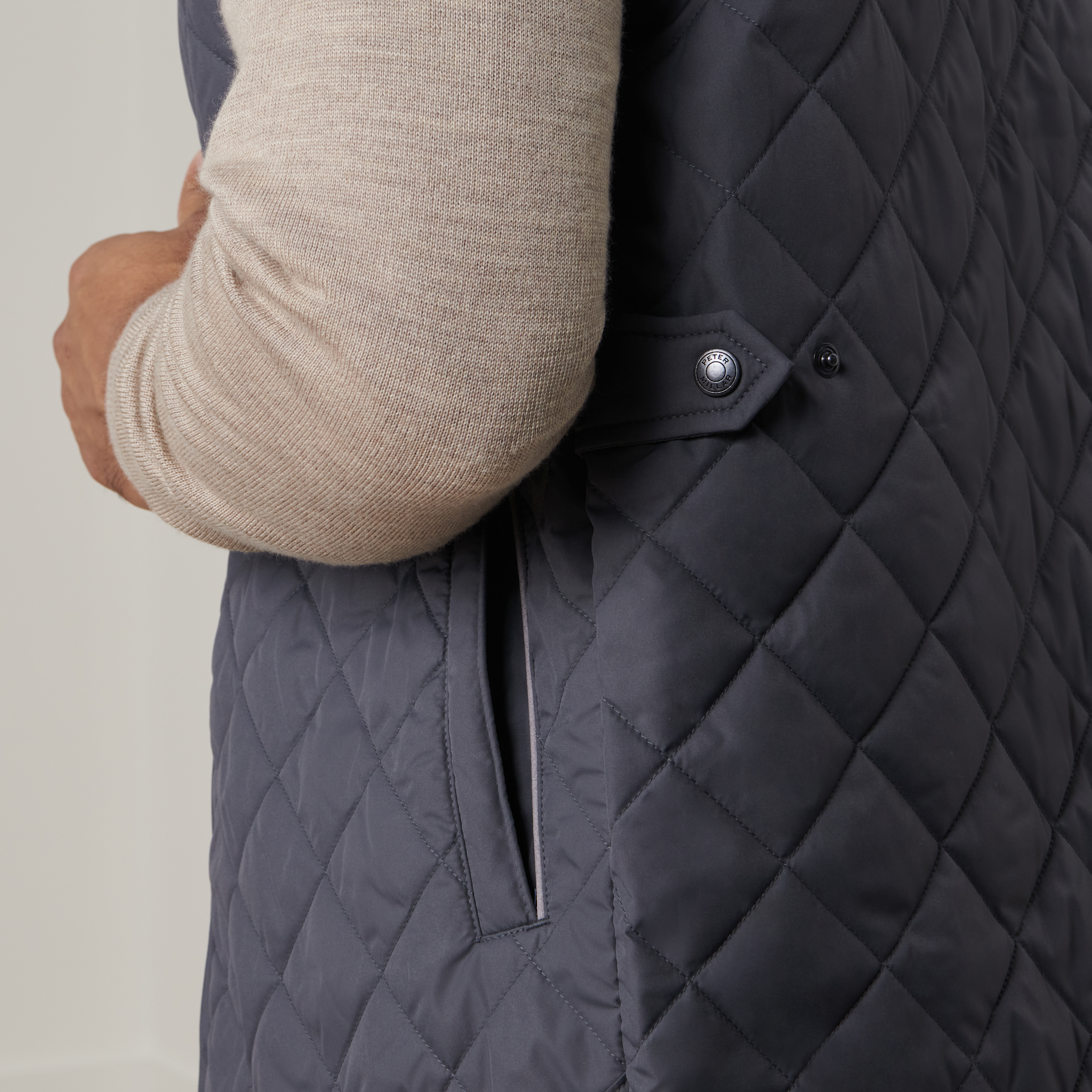 Our Essex vest brings the timeless quilted look up to speed with modern sensibilities. This season's design features an updated fabric with a more subtle matte finish, keeping its windproof and water-resistant qualities. A streamlined interior reduces weight while maintaining warmth and makes it perfect for layering on those in-between days.