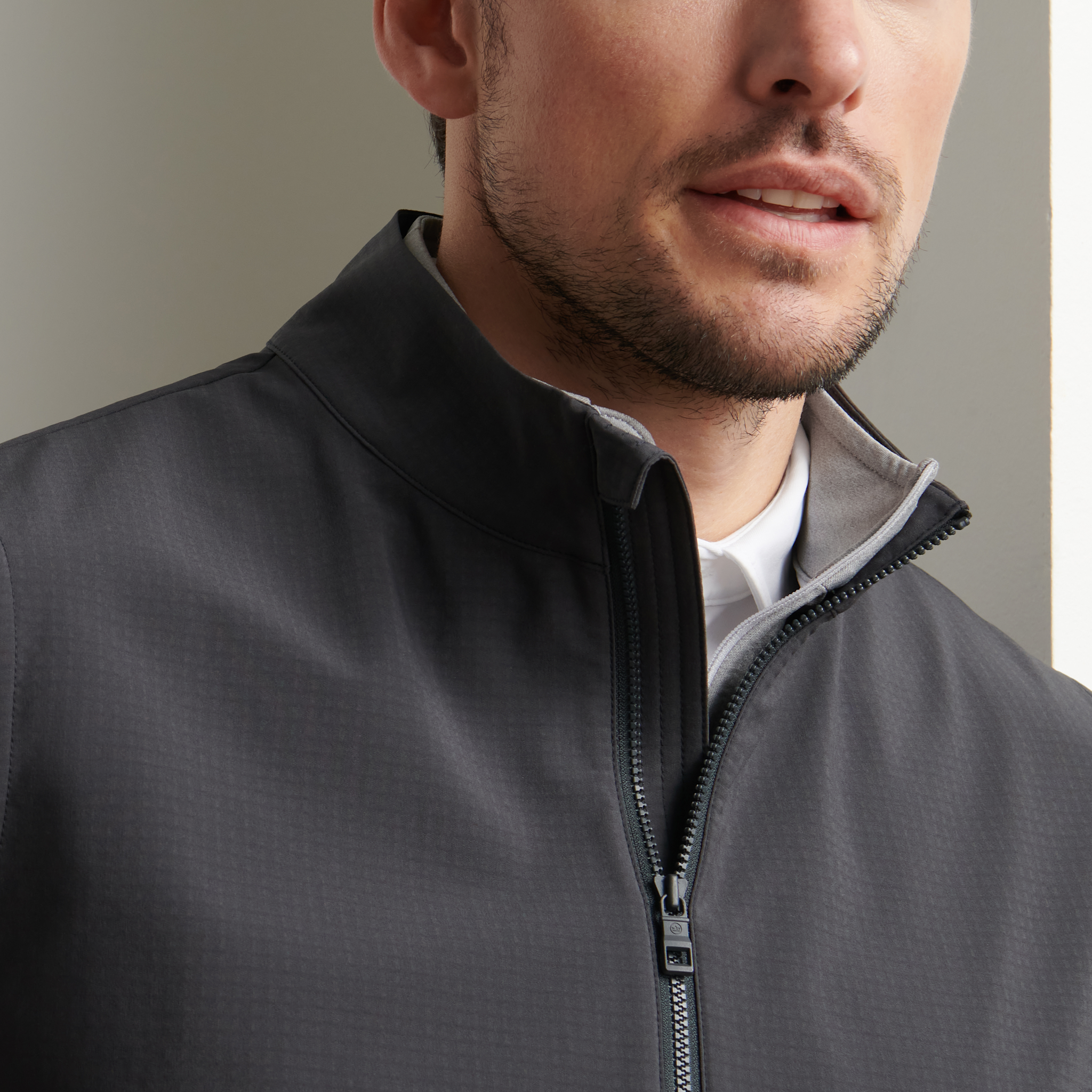A super clean layer that packs on performance with subtle and streamlined design. Lightweight stretch fabric is highly water-resistant and wind-resistant to keep you playing through in all conditions. The gridded fleece interior offers softness and easy layering on extra chilly days.