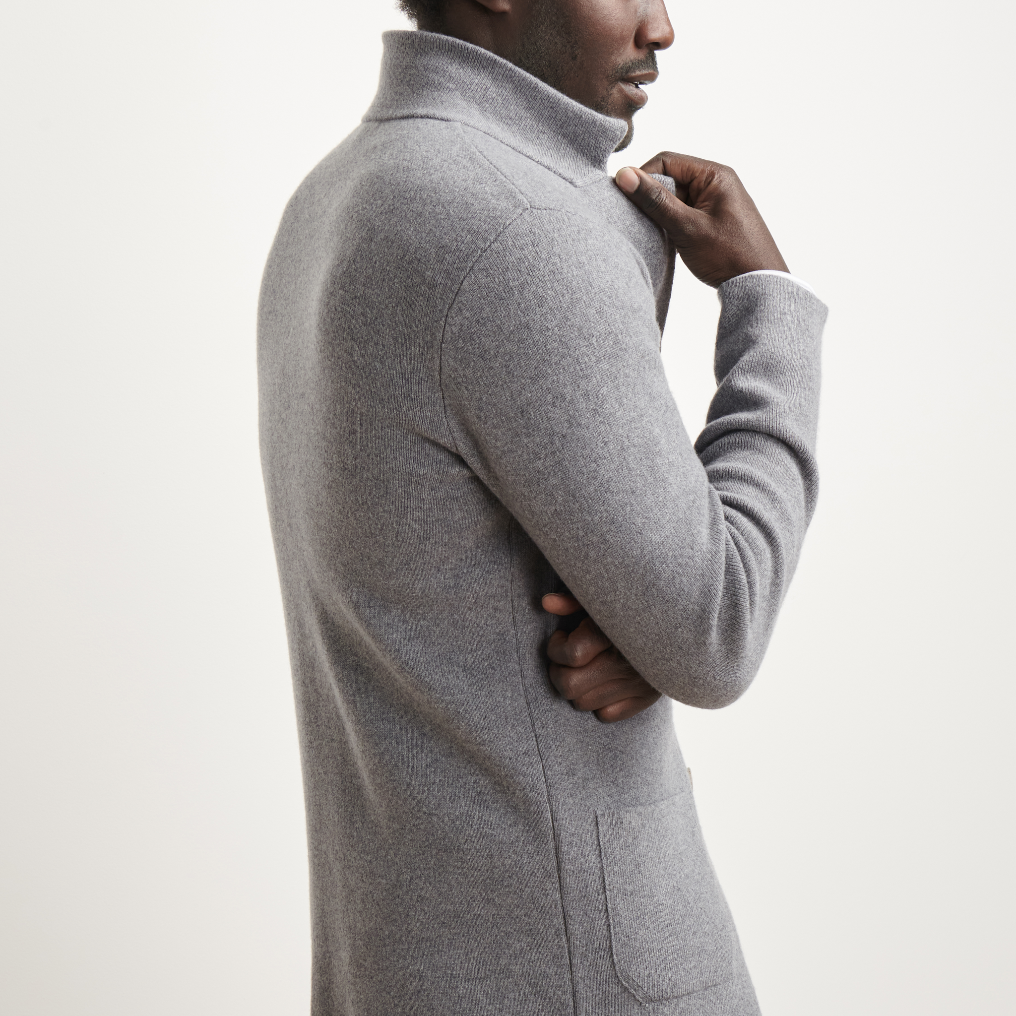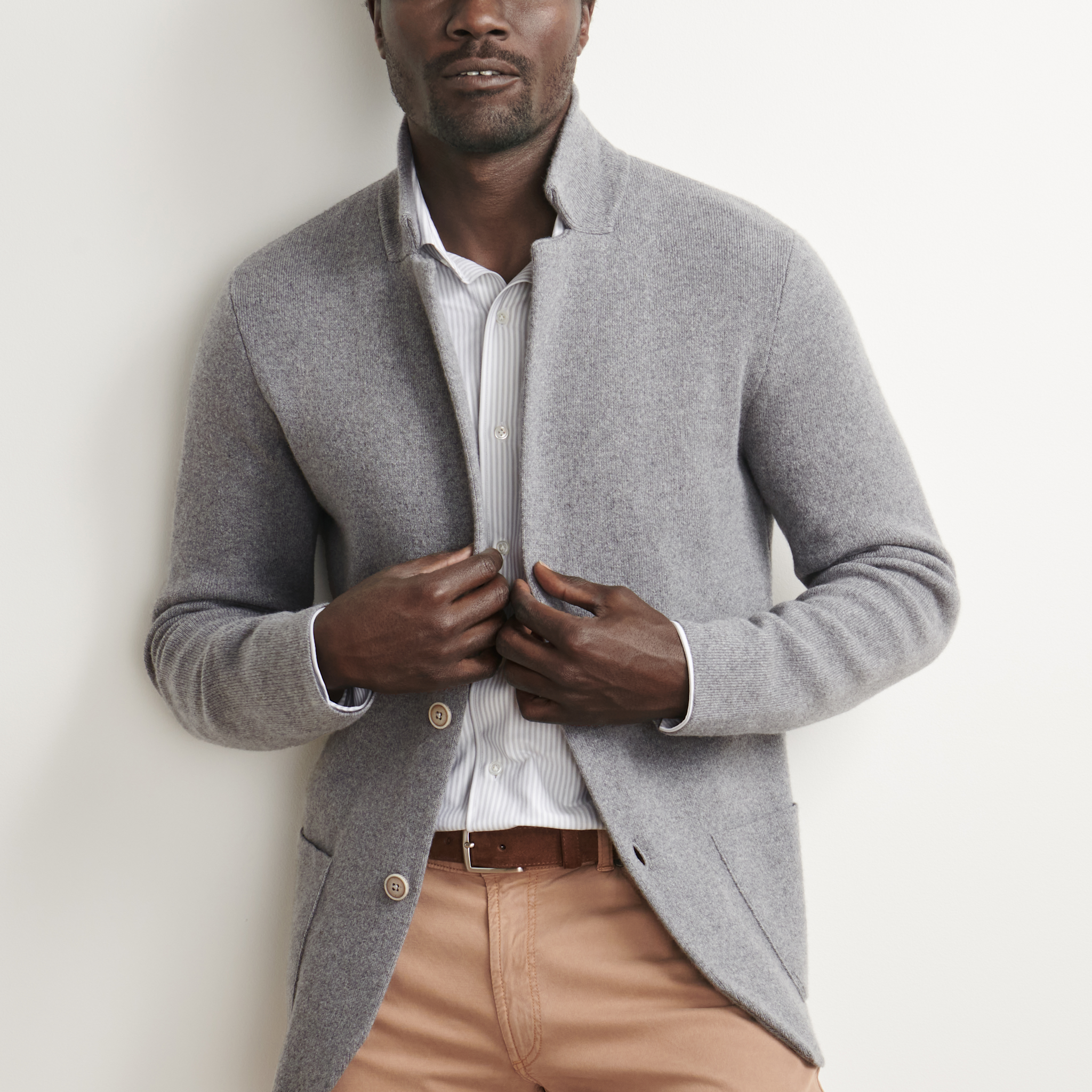 Blazer styling meets sweater softness. The Rooney is made from a luxurious blend of Merino and cashmere from Italy in a substantial 9 gauge knit with an elegant look and feel. Finished with Italian horn buttons, a chest pocket and two patch pockets.