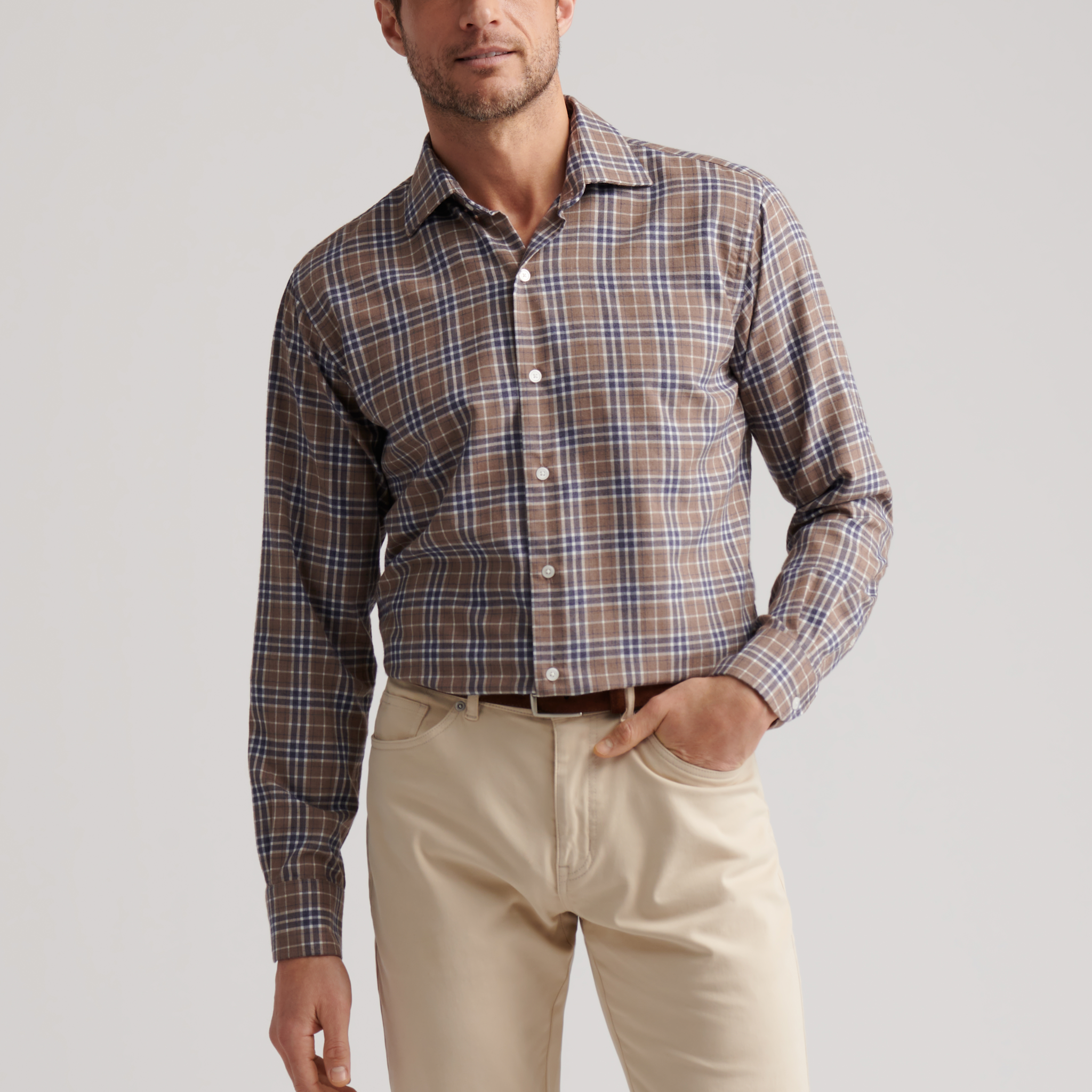 Peter Millar Big Bear Performance Flannel Shirt in Poplar Brown