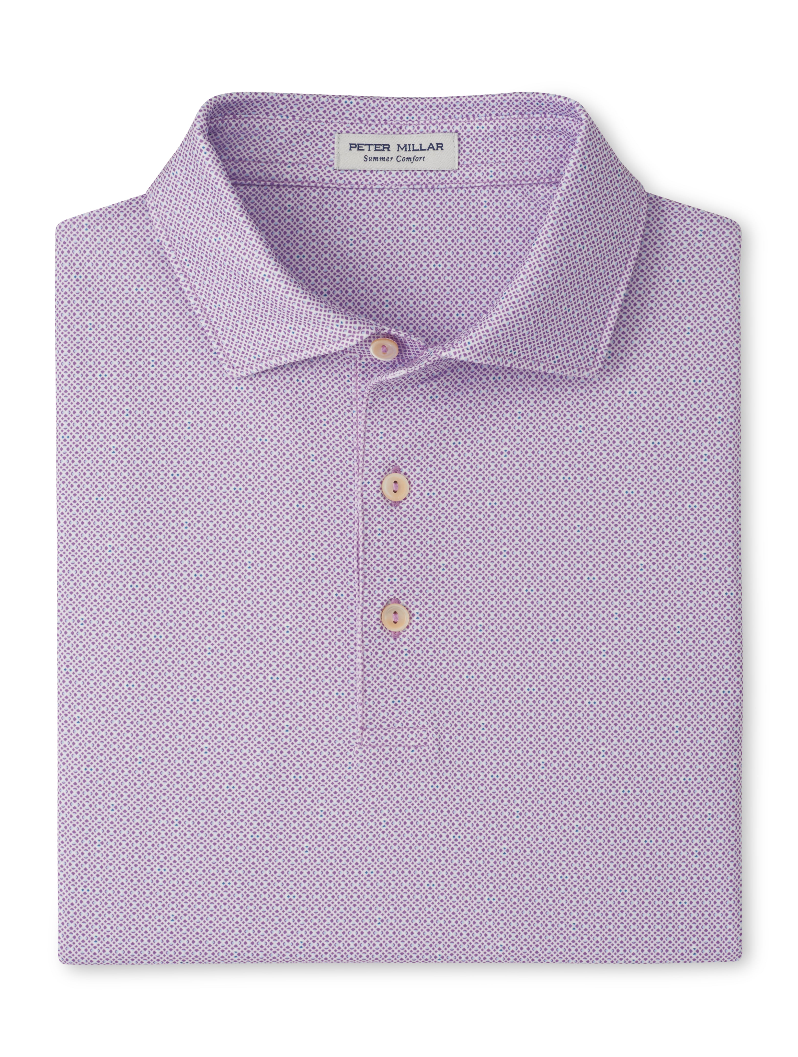 Our Summer Comfort jersey polos are gold standards for softness and exceptional performance. These are packed with four-way stretch, wicking and UPF 50+ protection in our signature fabrication. This shirt features a custom-designed geometric print for added style. Finished with a spread collar and three-button placket.