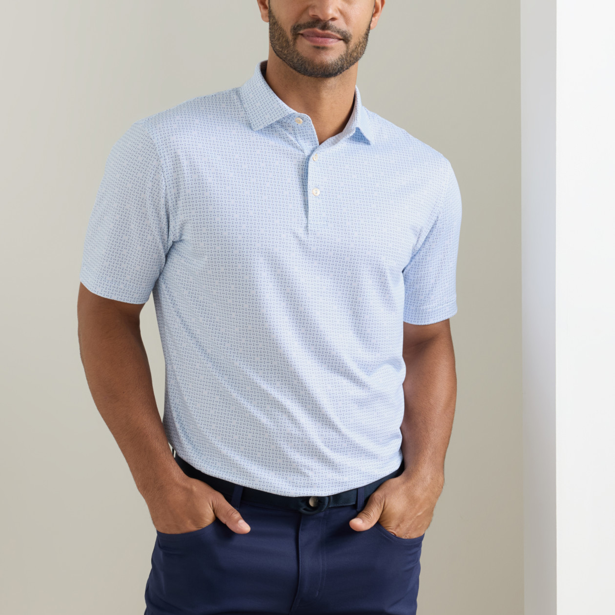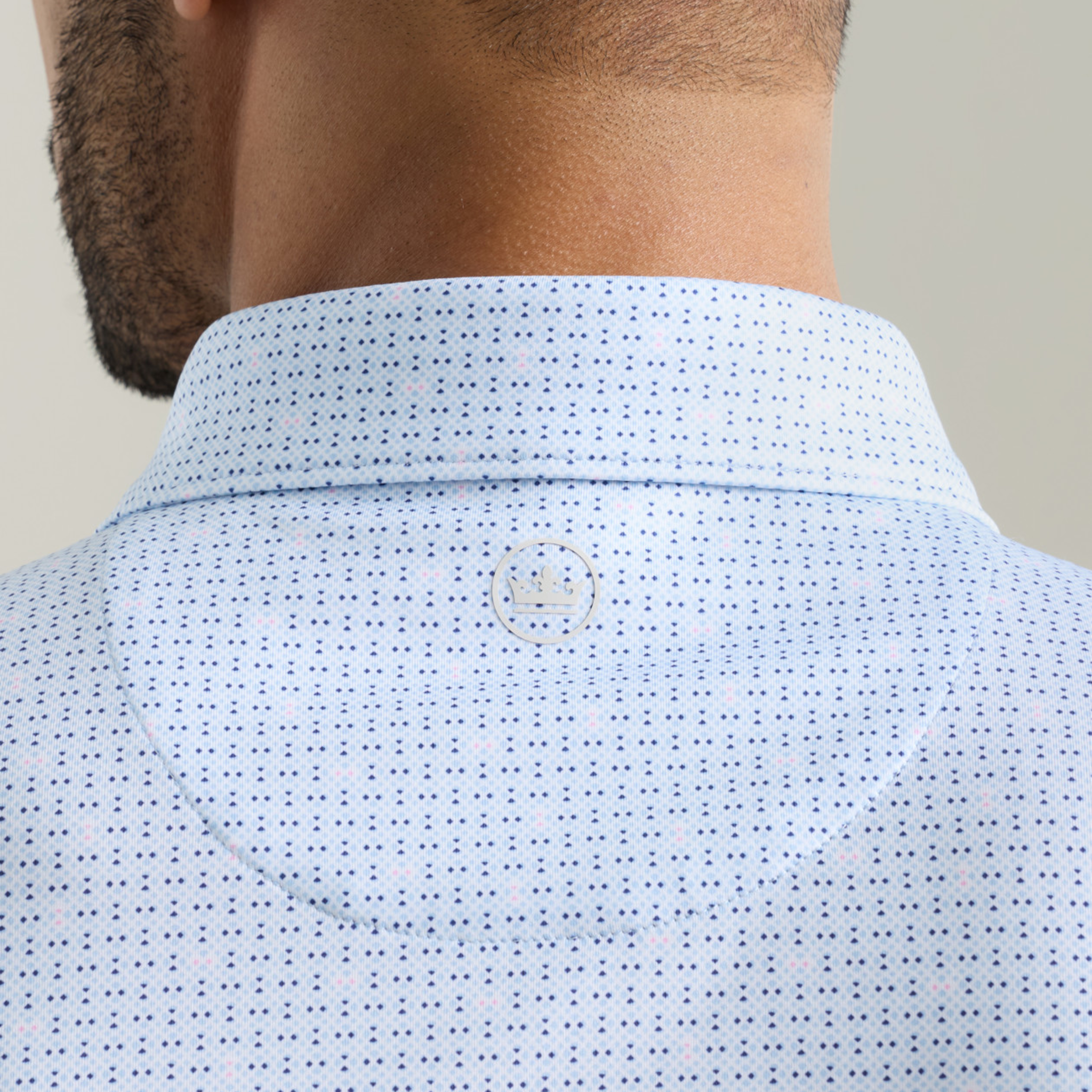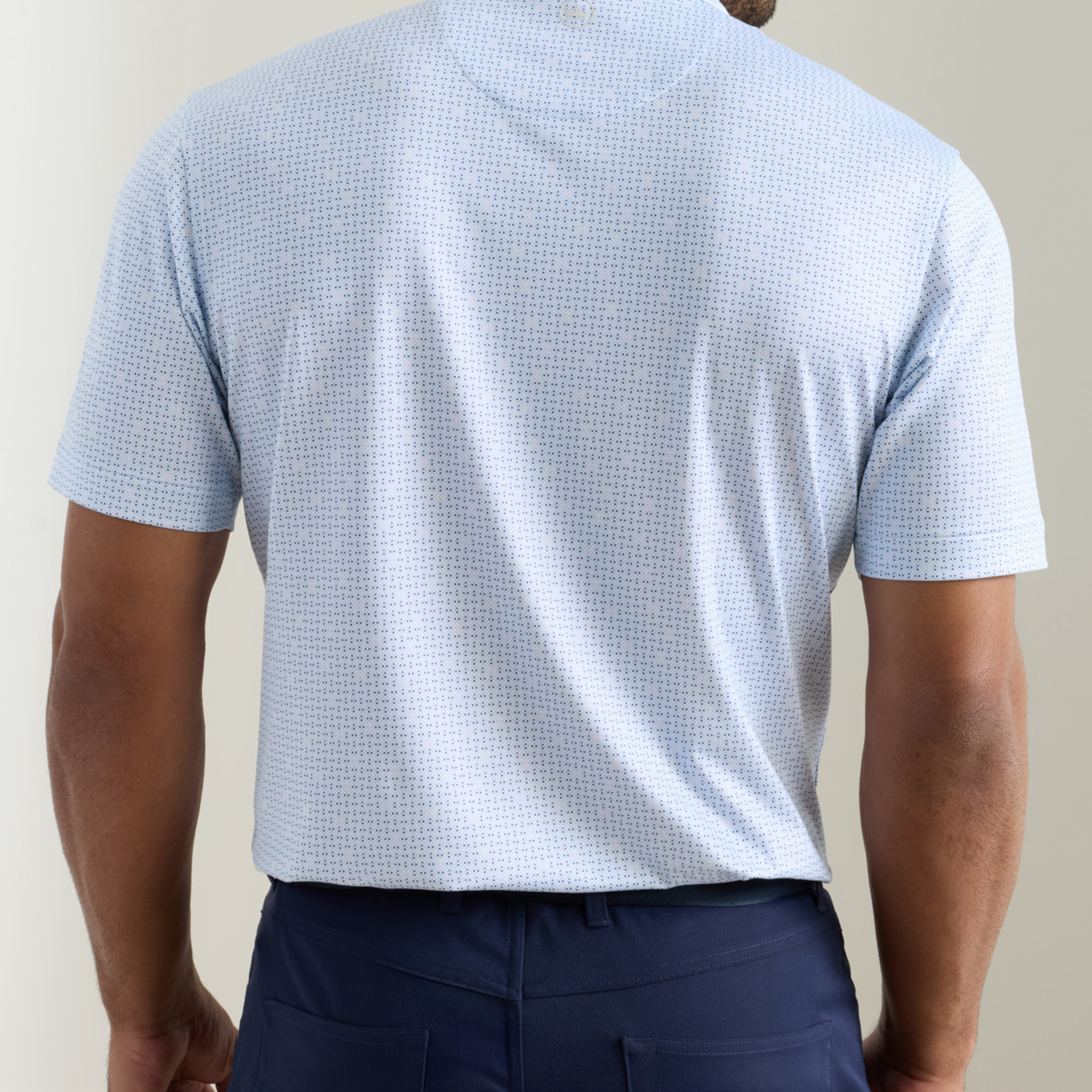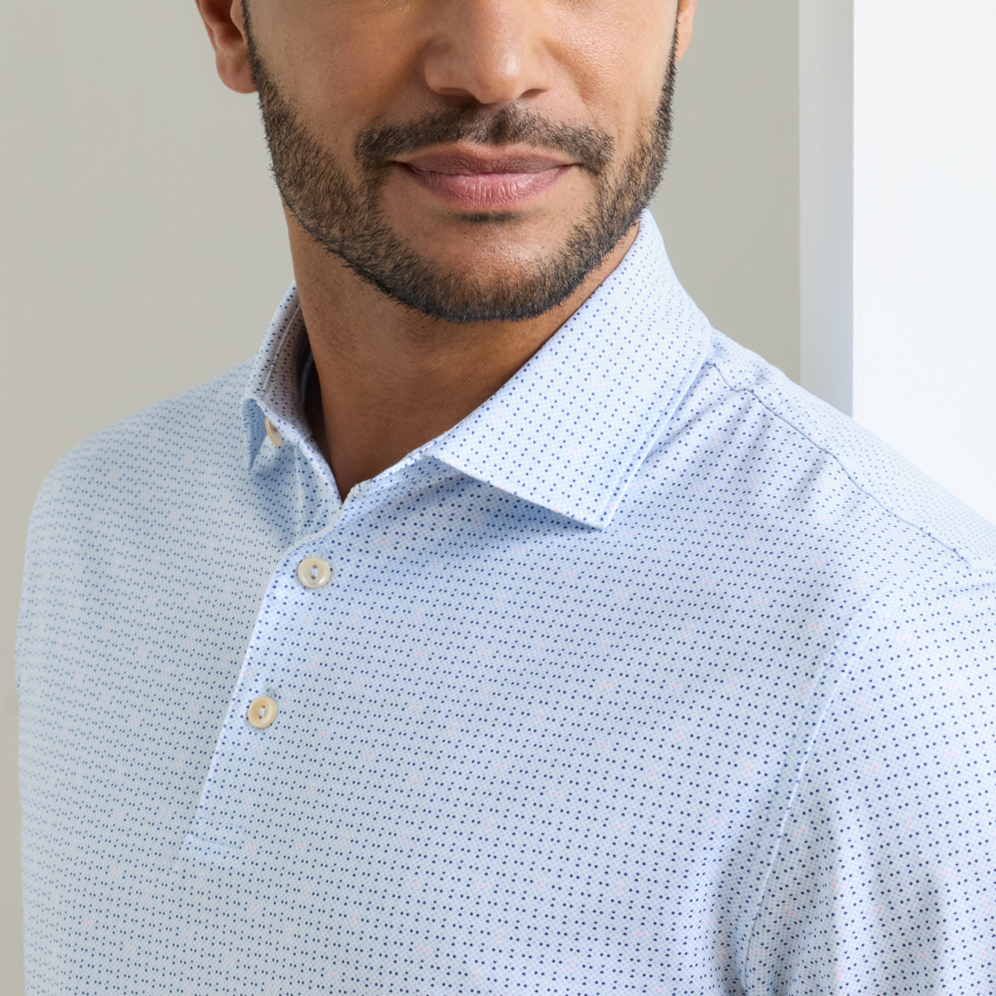 Our Summer Comfort jersey polos are gold standards for softness and exceptional performance. These are packed with four-way stretch, wicking and UPF 50+ protection in our signature fabrication. This shirt features a custom-designed geometric print for added style. Finished with a spread collar and three-button placket.