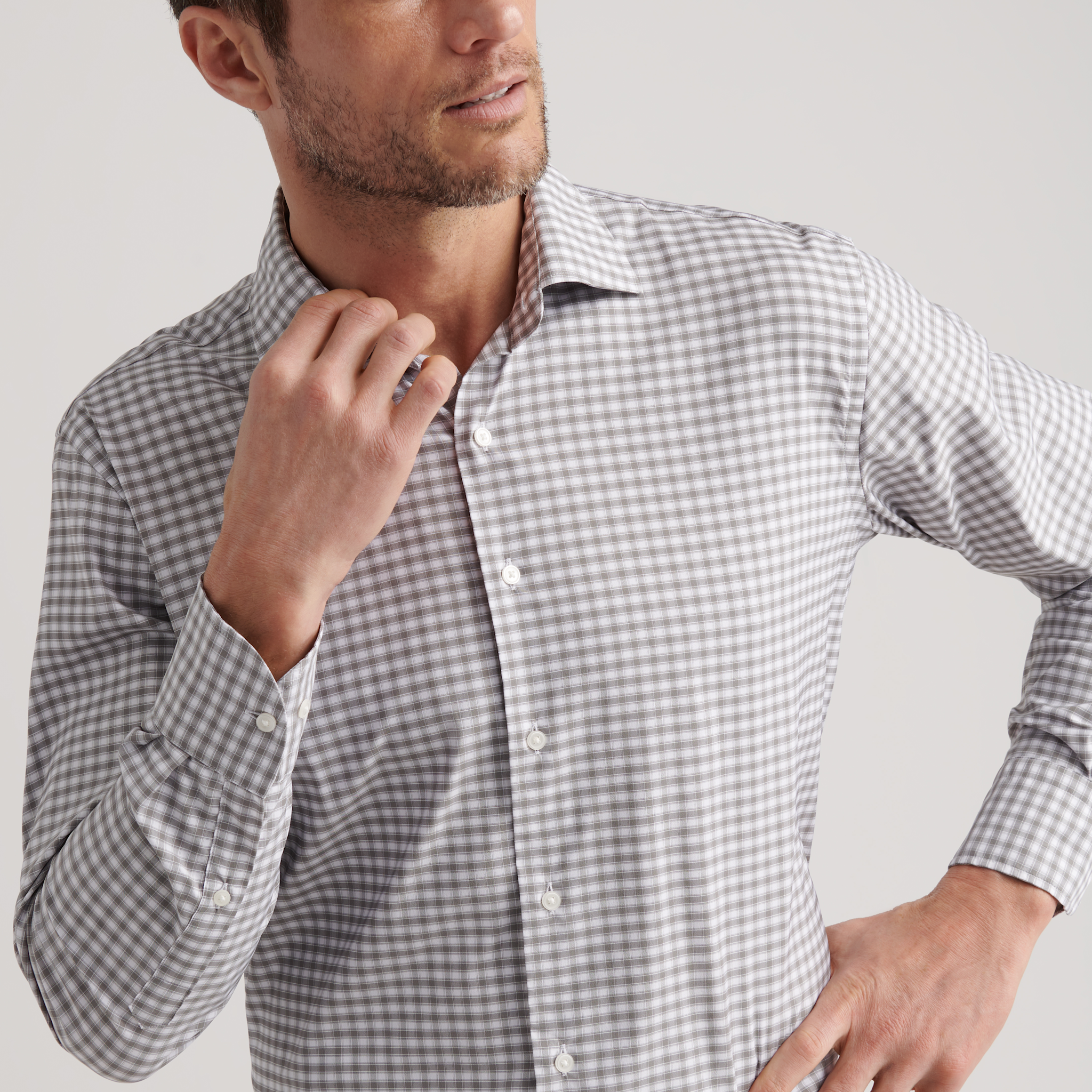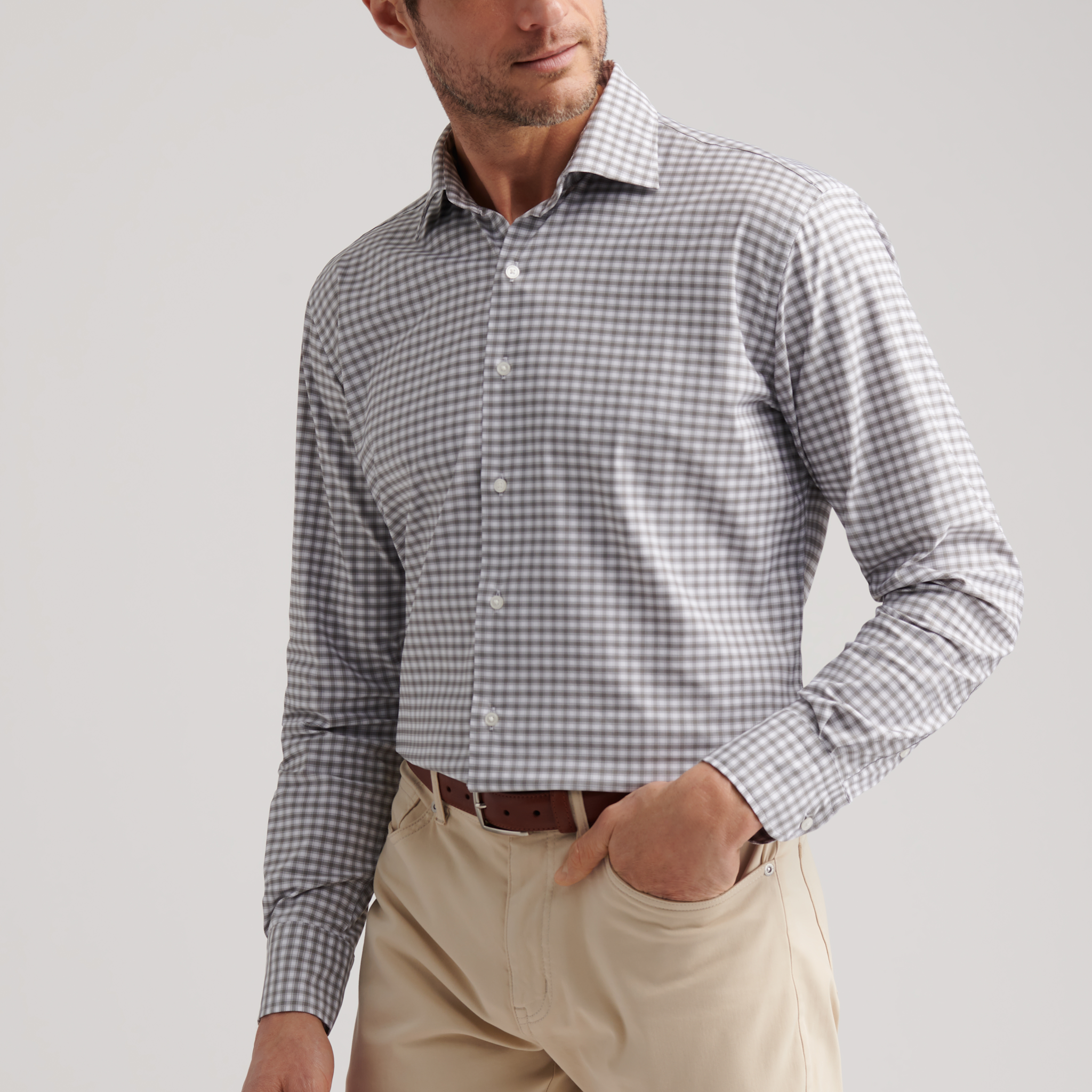 A new season brings a sharper focus on Shirts. Our performance twill Shirts have been updated with a slightly new collar expression and more refined detailing for an effortlessly versatile look. A signature performance fabric provides stretch, moisture-wicking and easy-care properties. Finished with a French placket, faux mother-of-pearl buttons and a soft barrel cuff.