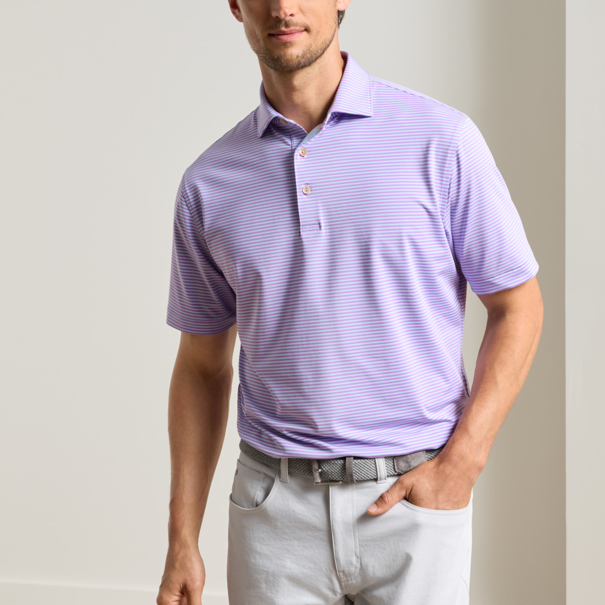 Summer is all the time in our performance jersey polos. These are packed with four-way stretch, wicking and UPF 50+ protection in our signature Summer Comfort fabrication. Finished with a spread collar and three-button placket.