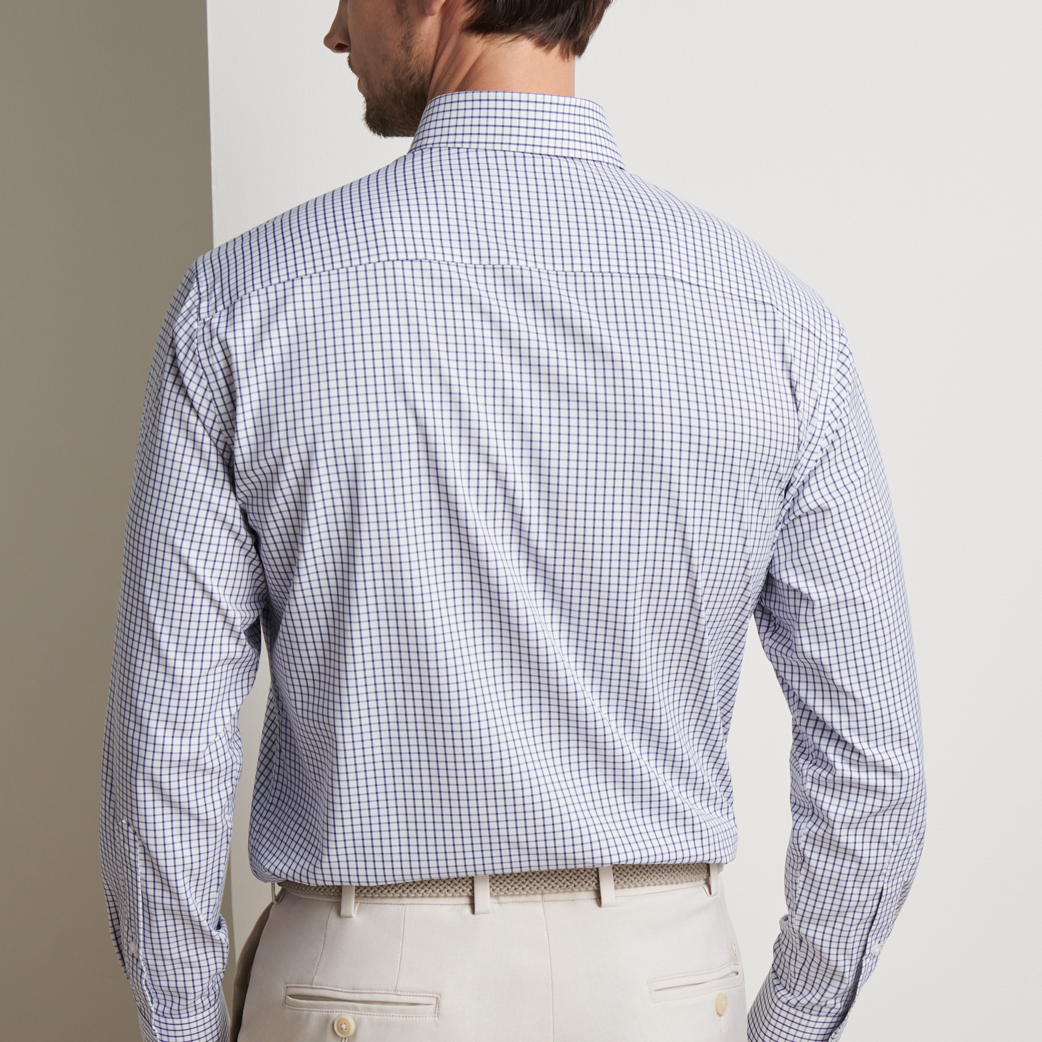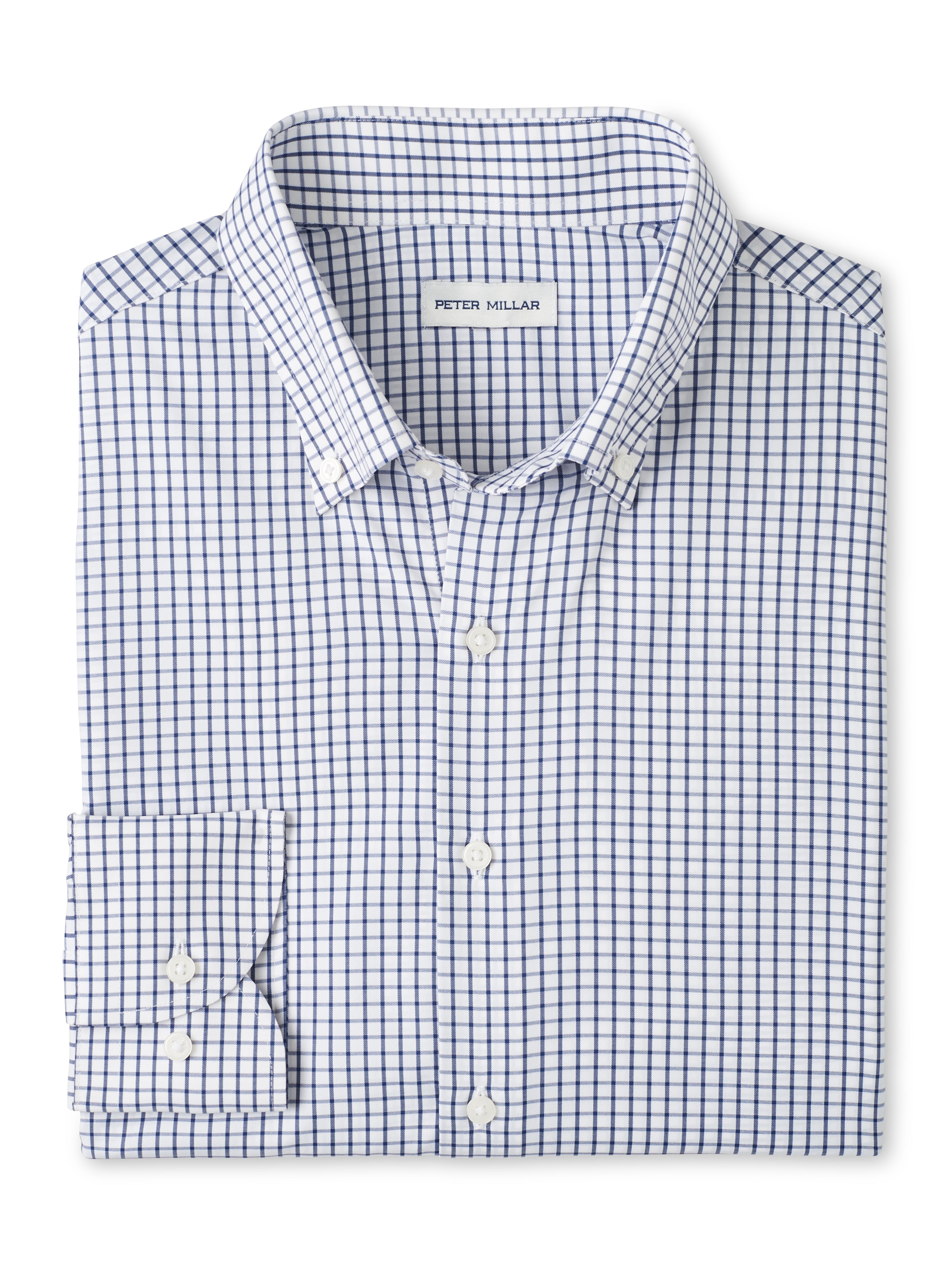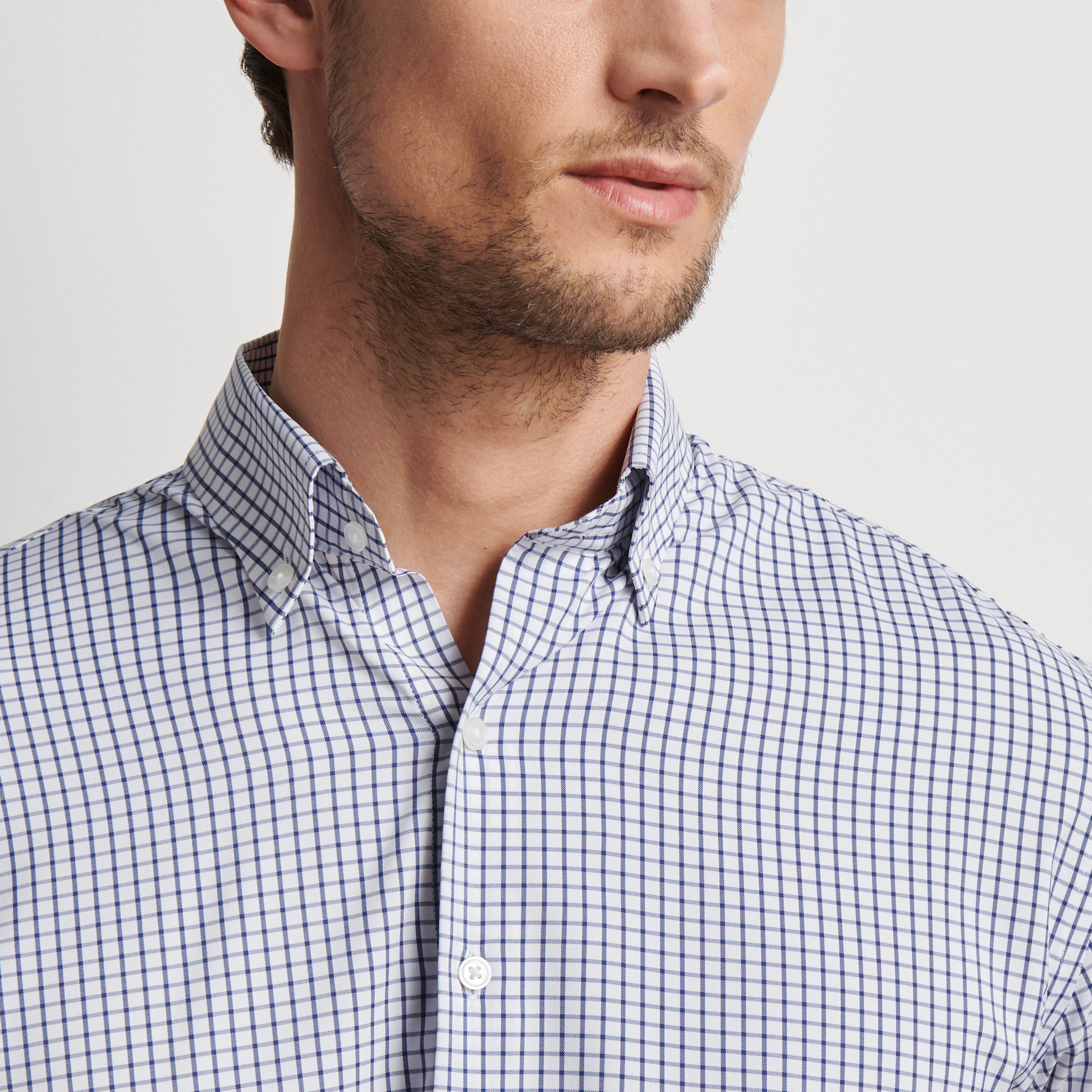 This sophisticated essential conveys the classic look of a twill shirt in a comfortable and versatile performance fabric. It features easy-care, two-way stretch, wicking and UPF 50+ sun protection. Designed with a classic check pattern, it's finished with a button-down collar and a French placket.