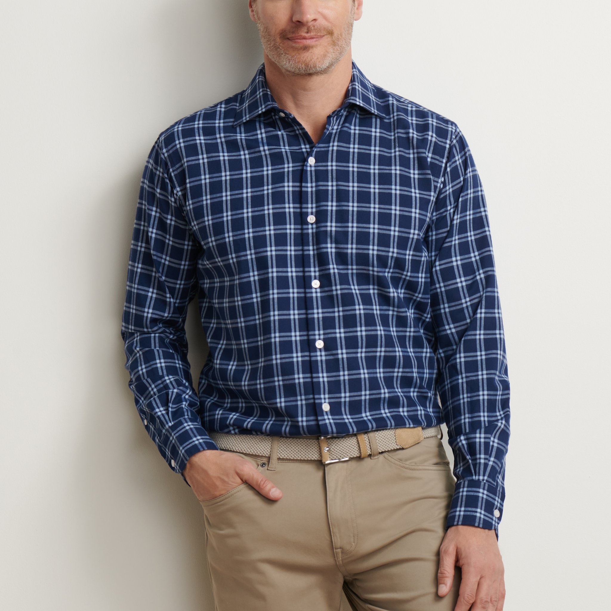 Peter Millar Mystic Performance Flannel Sport Shirt in Navy