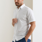 Peter Millar Seaward Cotton Lyocell Short Sleeve Sport Shirt in White