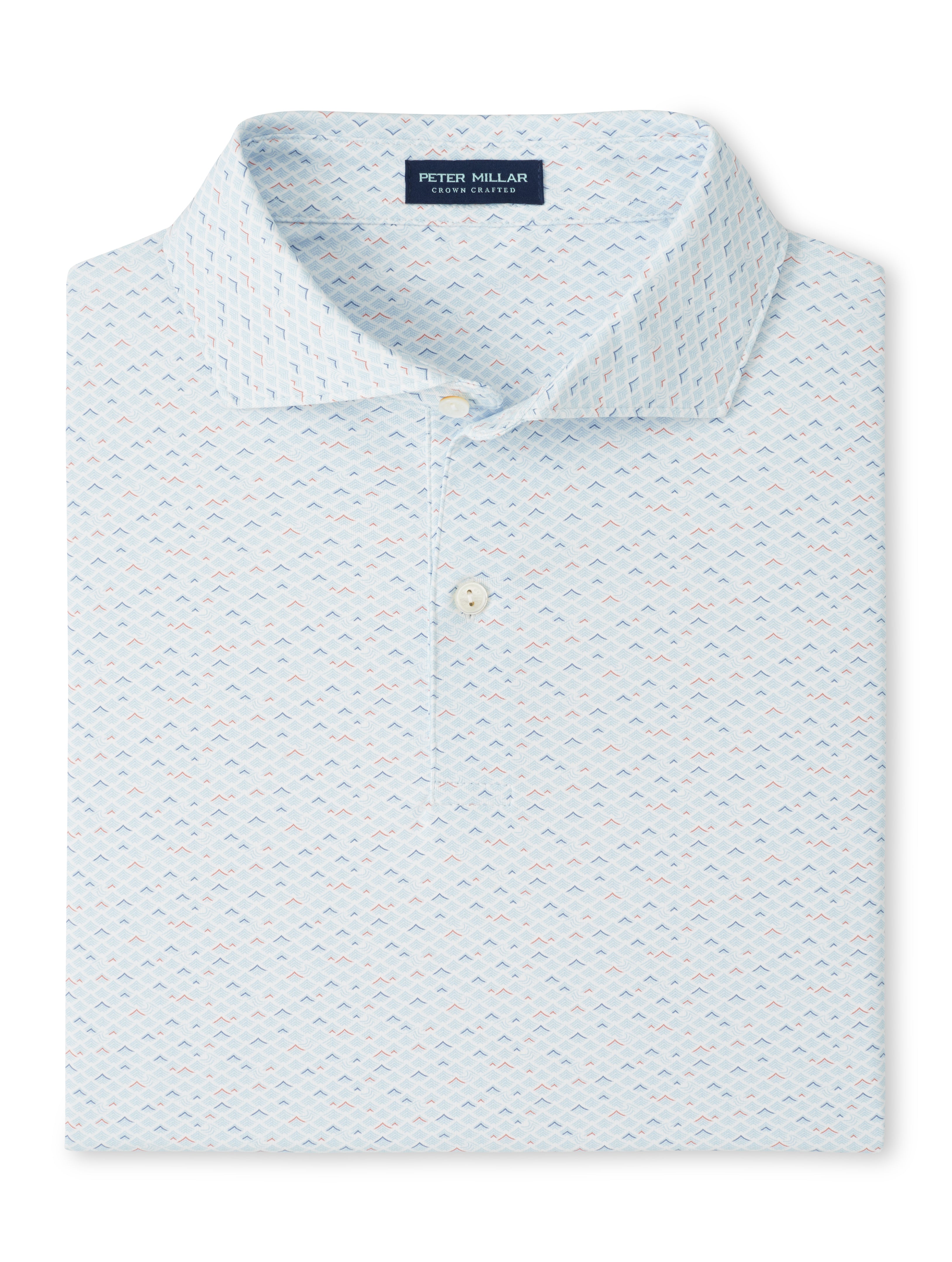 This shirt features a custom-designed geometric wave print for added style. Finished with a spread collar and detailed with mother-of-pearl buttons.