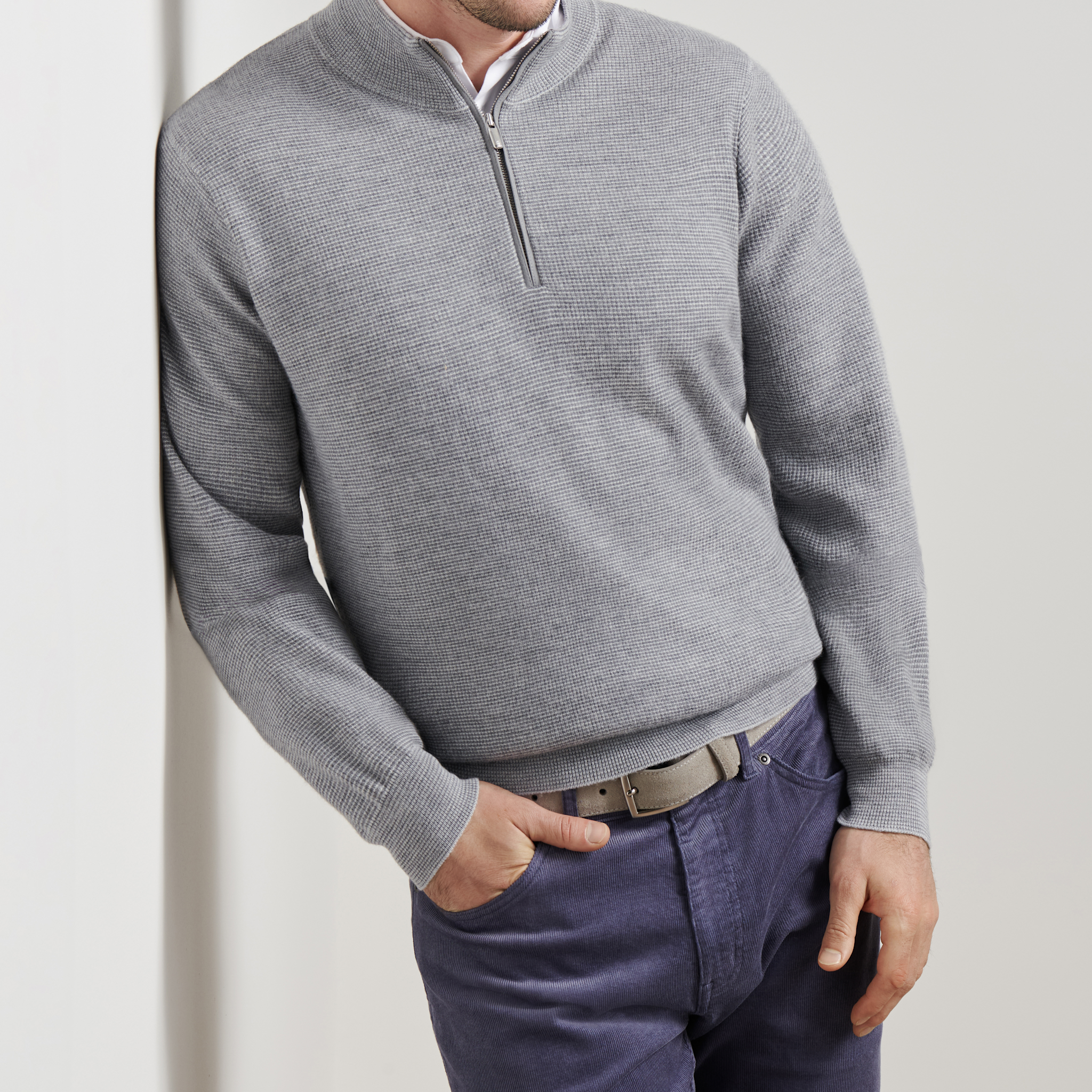 Peter Millar West Quarter-Zip Sweater in British Grey
