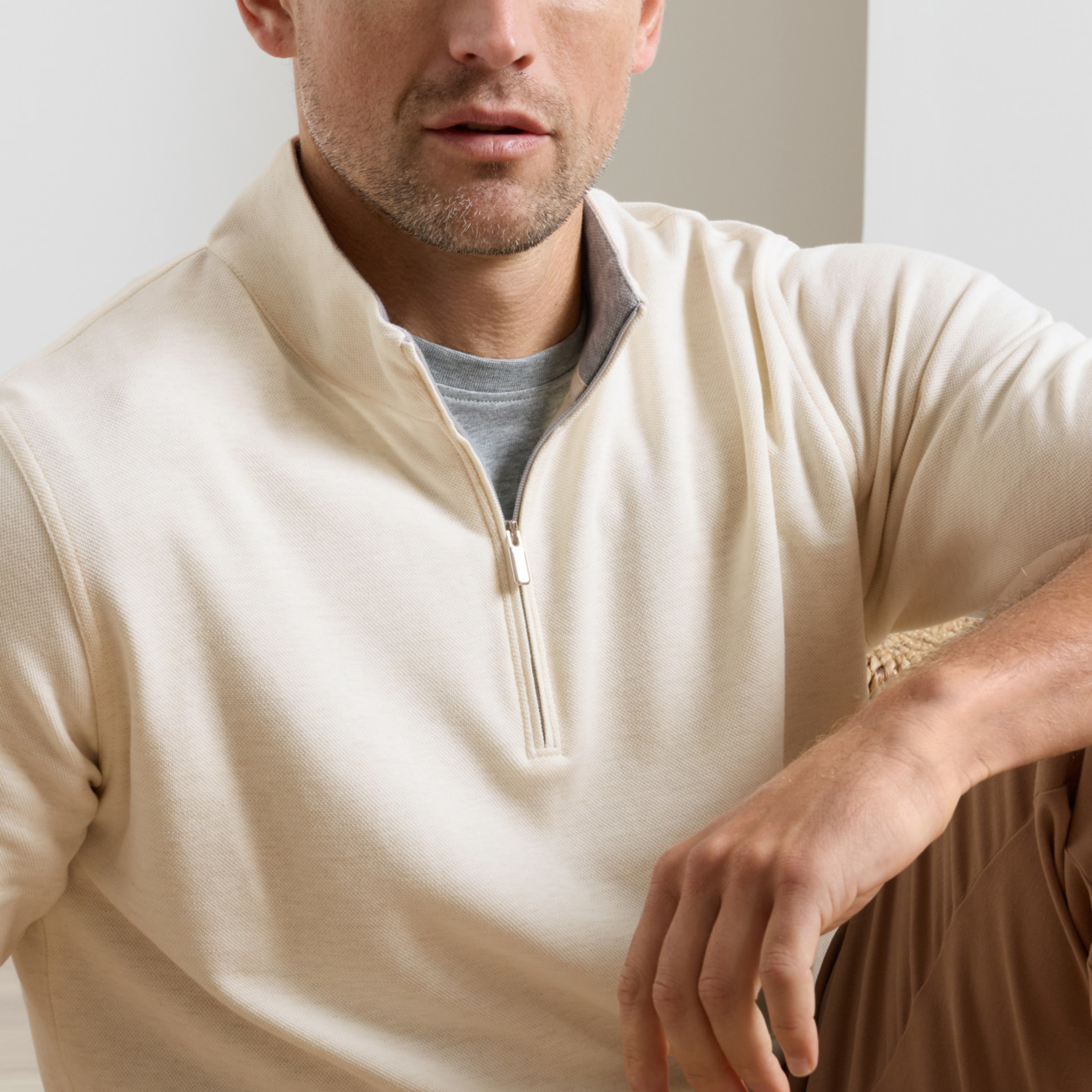 Peter Millar Perth Melange Performance Quarter-Zip in Snow Pea