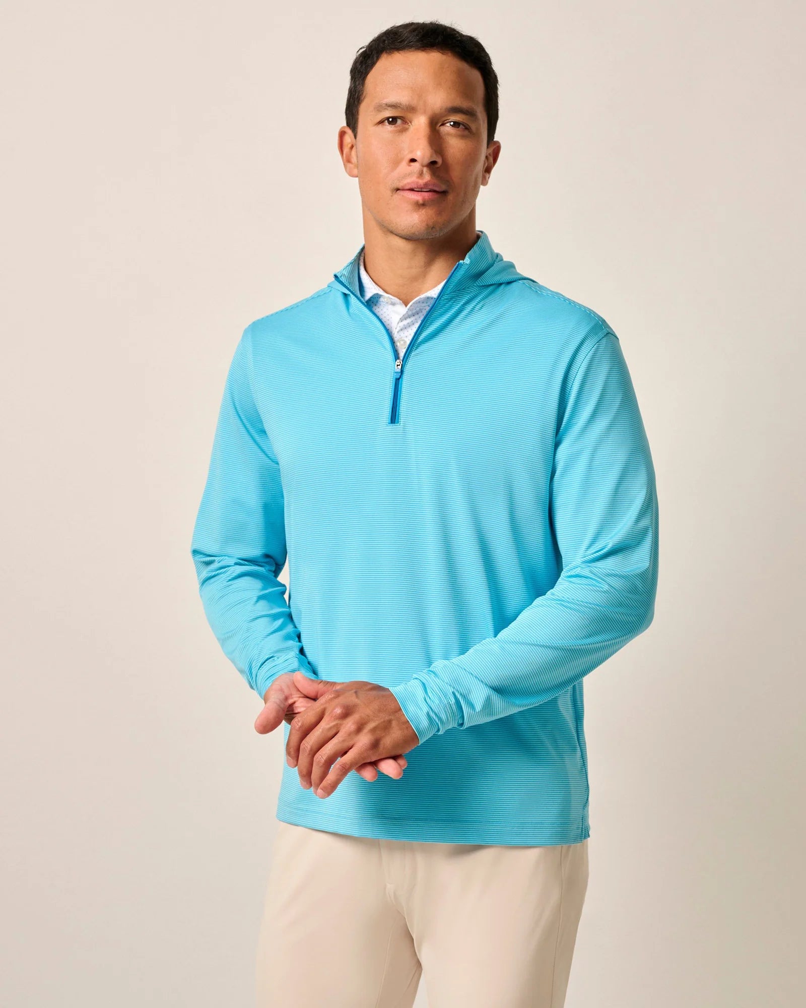 Johnnie-O Hybrid Performance Quarter-Zip Hoodie in Majorca and Tarpon