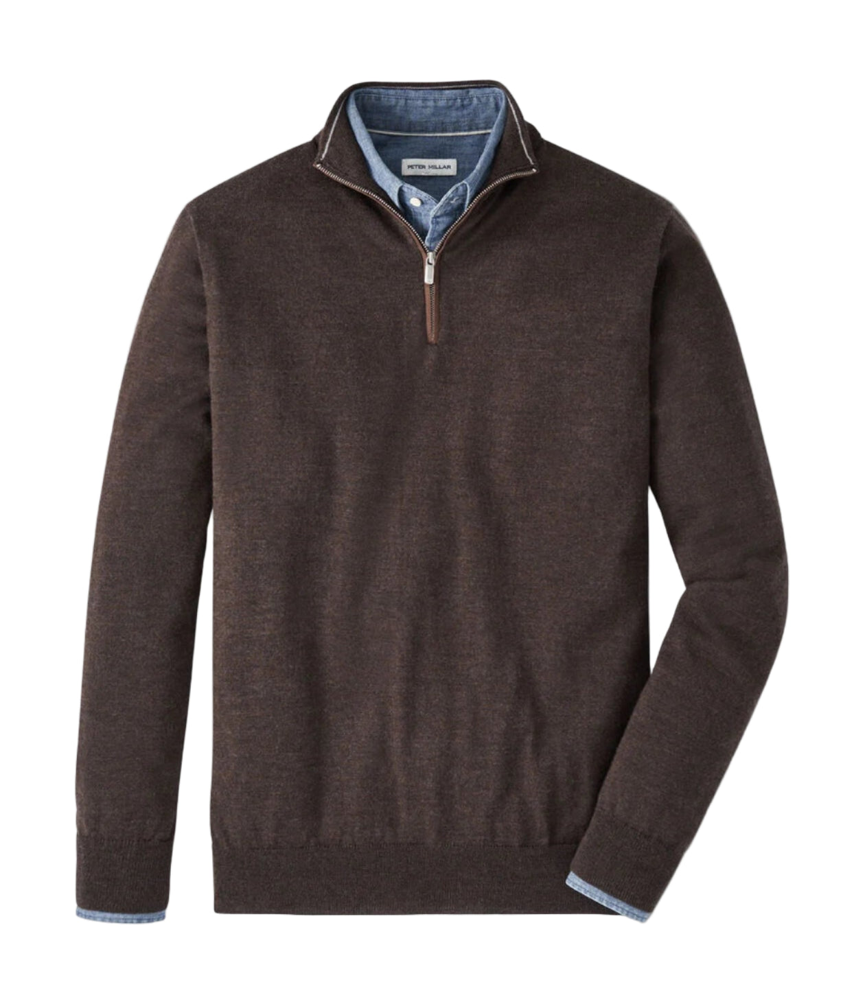 Peter Millar Autumn Crest Suede Trim Quarter-Zip Sweater in French Press