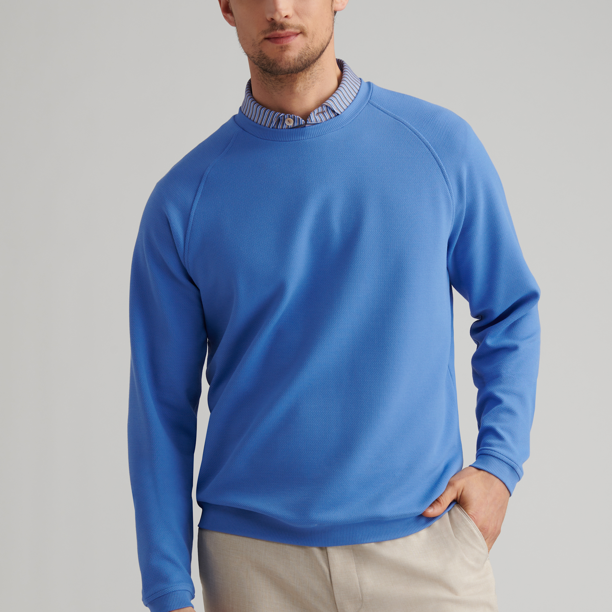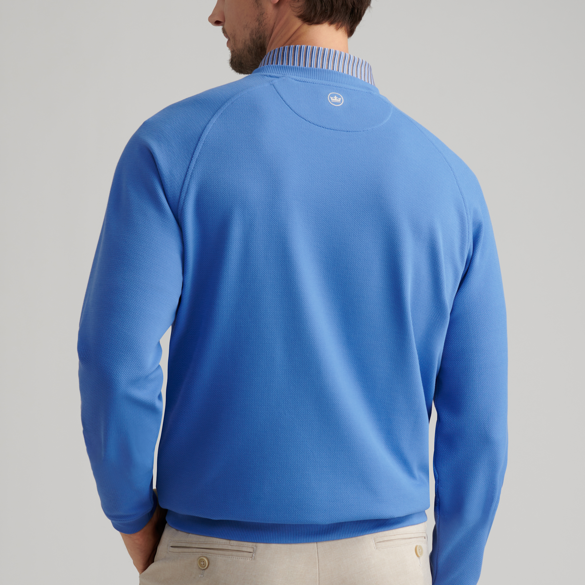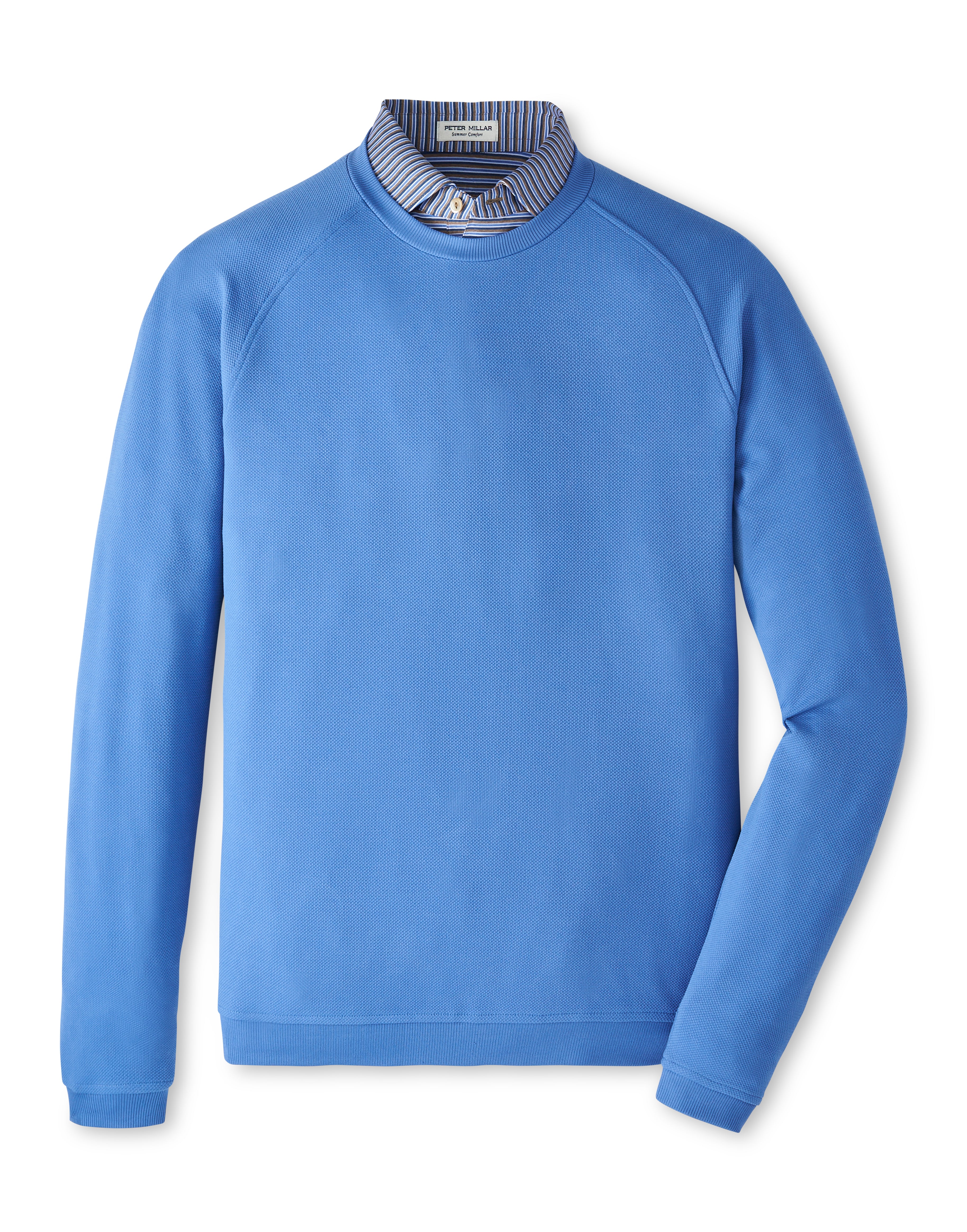 The Cradle crewneck is back this season in an all-new textured piqué knit for a more classic, sweater-like look and feel. A must-have for on or off the golf course, it offers four-way stretch, wicking and easy-care for optimal comfort. Finished with raglan sleeves, banded cuffs and a banded hem.