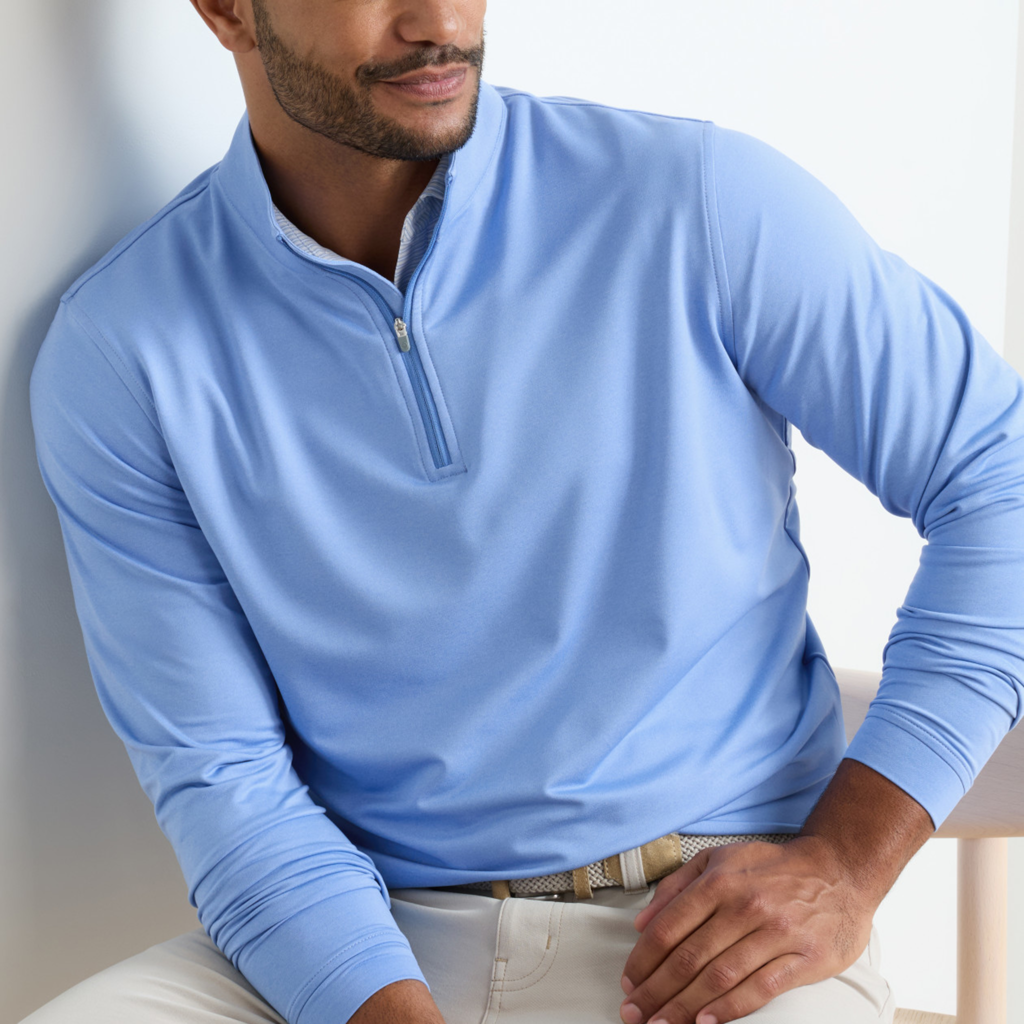 Our iconic Perth quarter-zip delivers a performance-focused twist on a classic style in our signature loop terry fabric. It offers four-way stretch, wicking and easy-care to keep you comfortable on and off the golf course. This style incorporates mélange yarns for a subtle look. It’s finished with a mock collar and banded cuffs and hem.