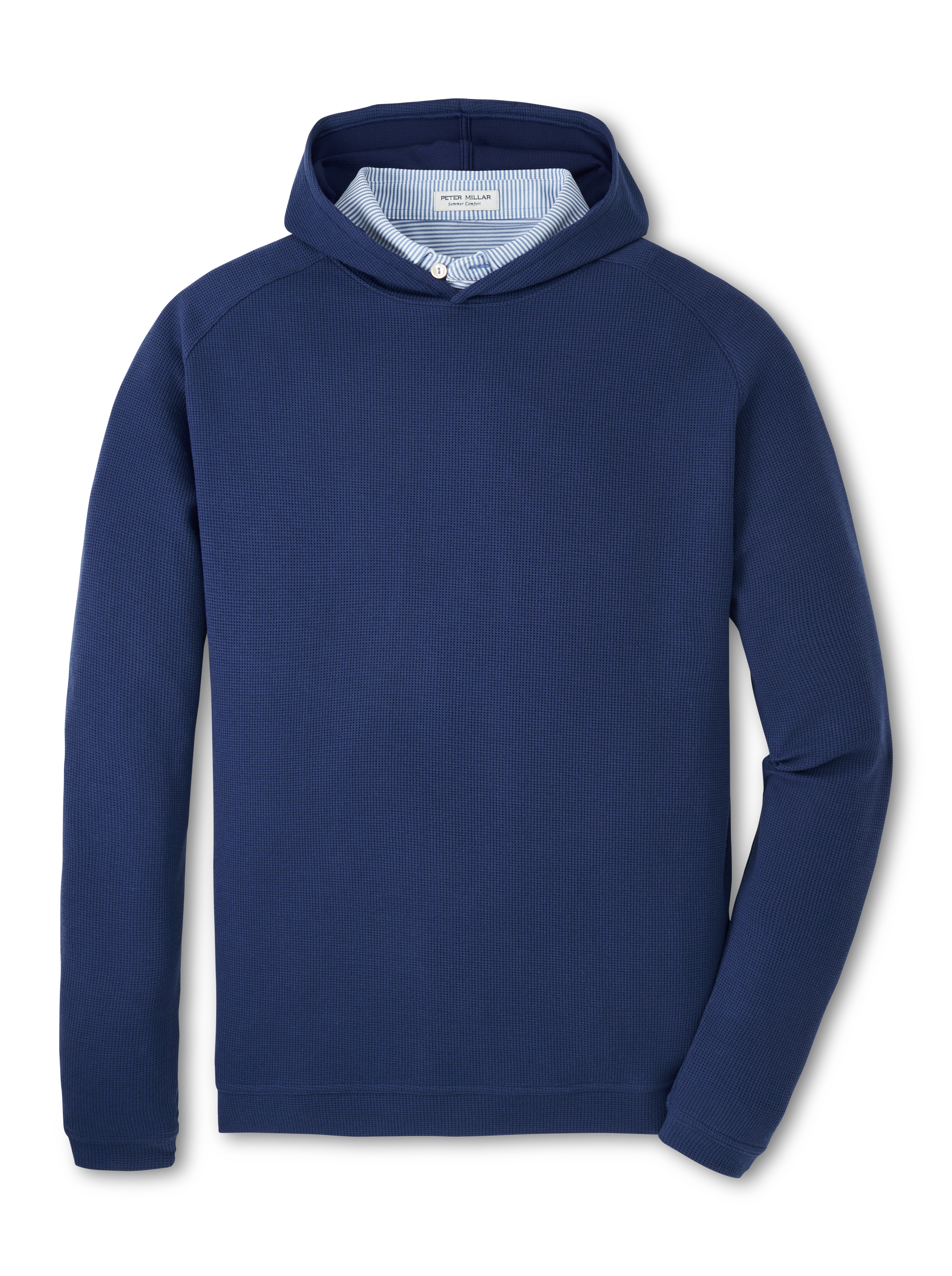 Peter Millar Pine Waffle Performance Hoodie in Sport Navy