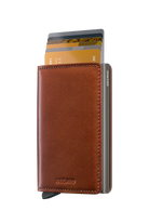 The Slimwallet is a modern take on the classic billfold. With its slim profile it fits perfectly into every pocket. The generously cut leather holds at least an additional six cards, banknotes and business cards.