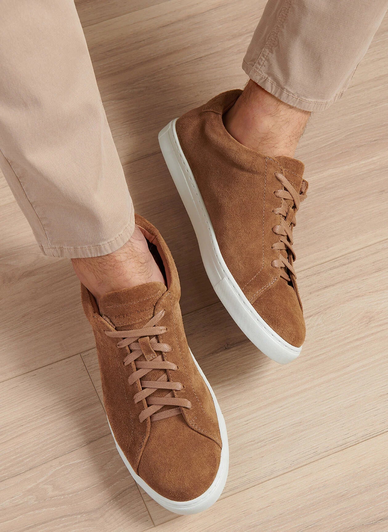 Peter Millar Vantage Lite Suede Sneaker in Dark Amber