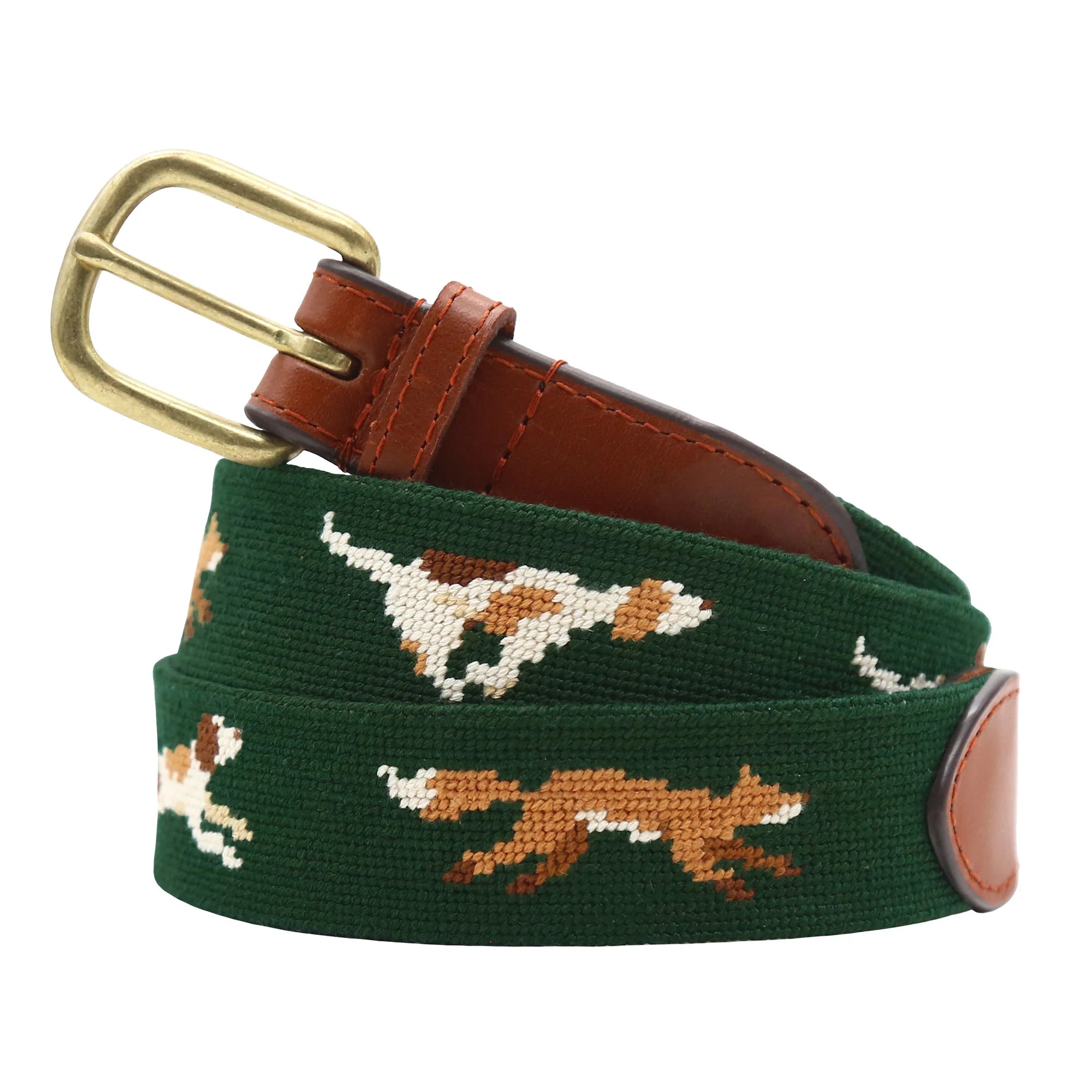 Smathers & Branson Fox Chase Needlepoint Belt in Deep Hunter