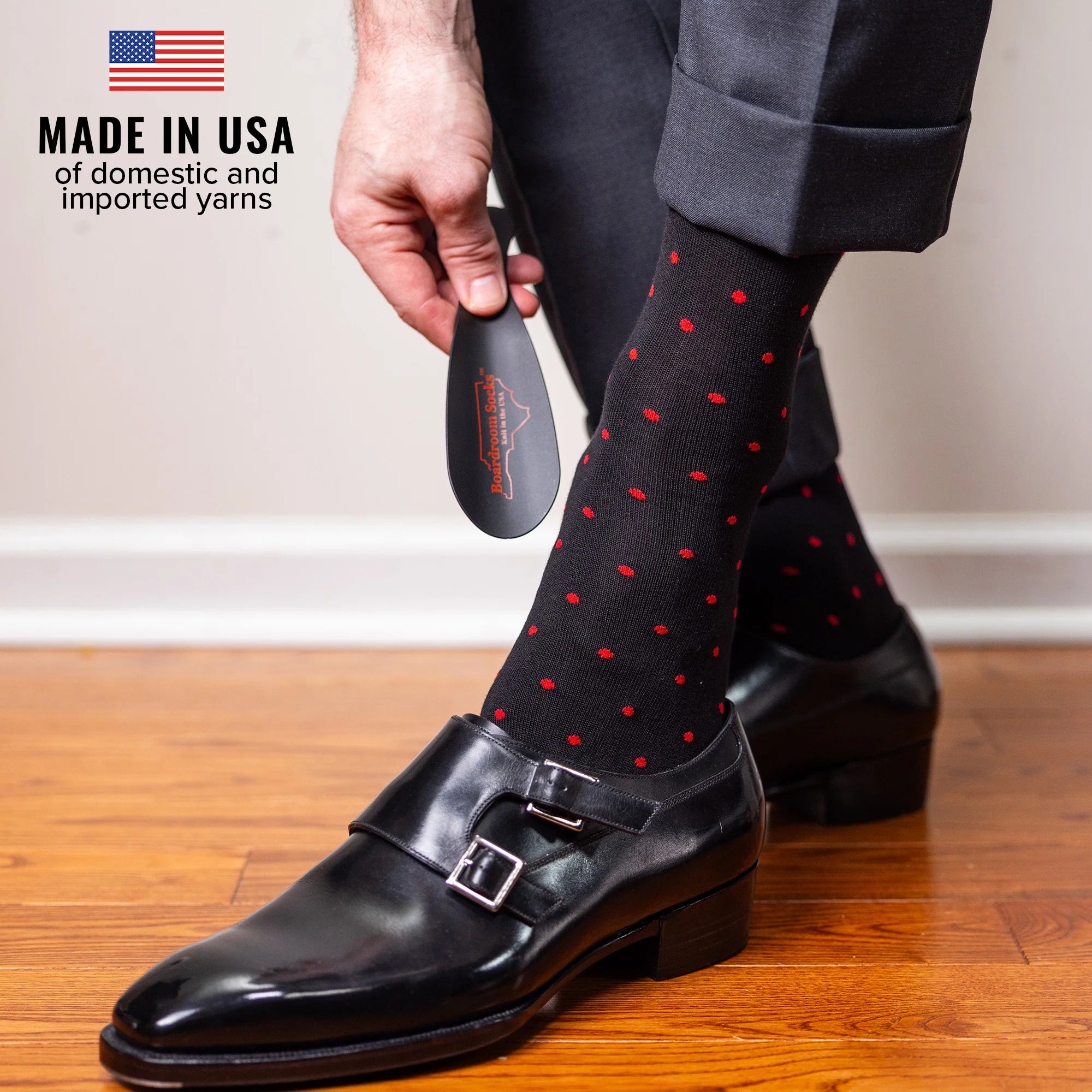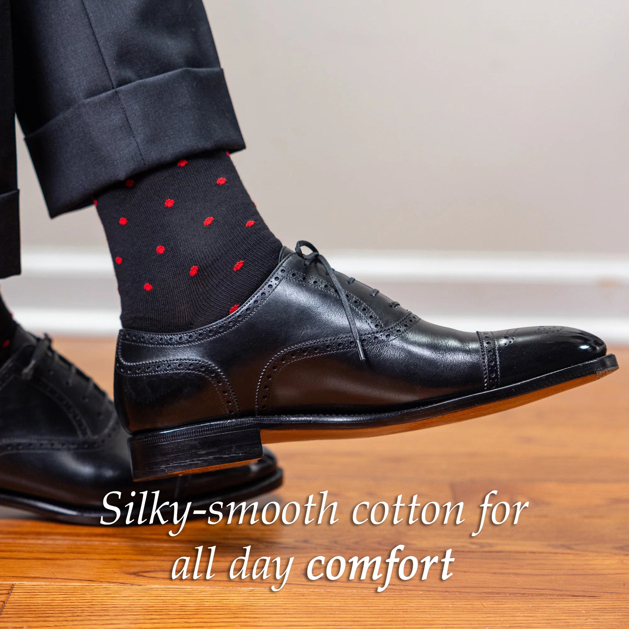 Boardroom Socks Red Dots on Black Cotton Over the Calf Dress Socks