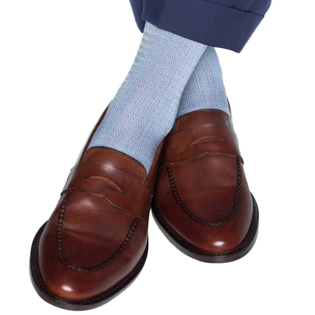 Dapper Classics Chain Link Cotton Sock Linked Toe Over-The-Calf in Azure Blue