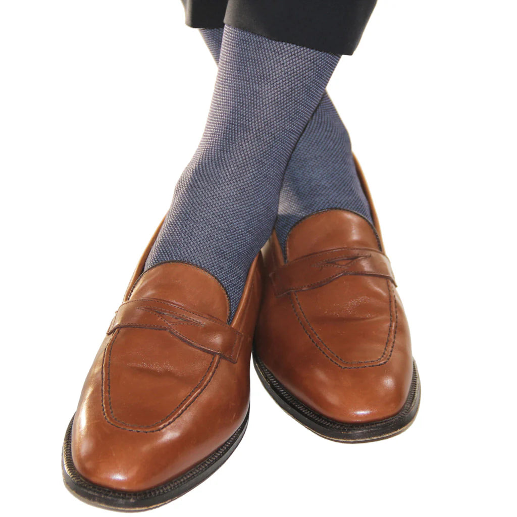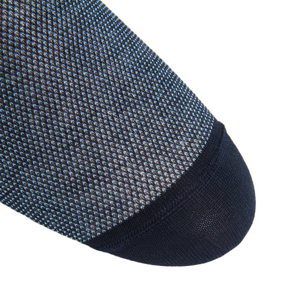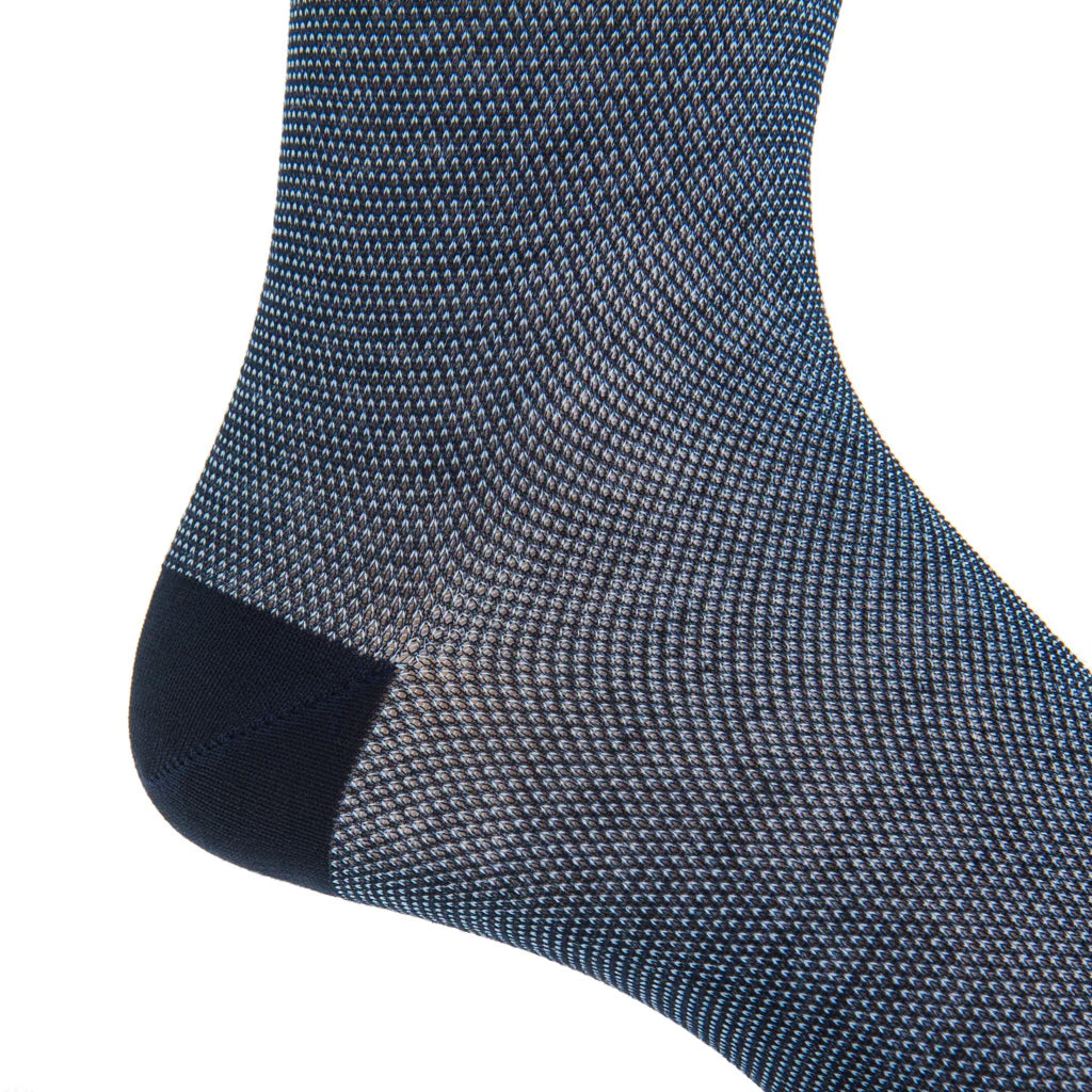 Dapper Classics Nailhead Cotton Sock Linked Toe Over-The-Calf in Navy and Sky Blue